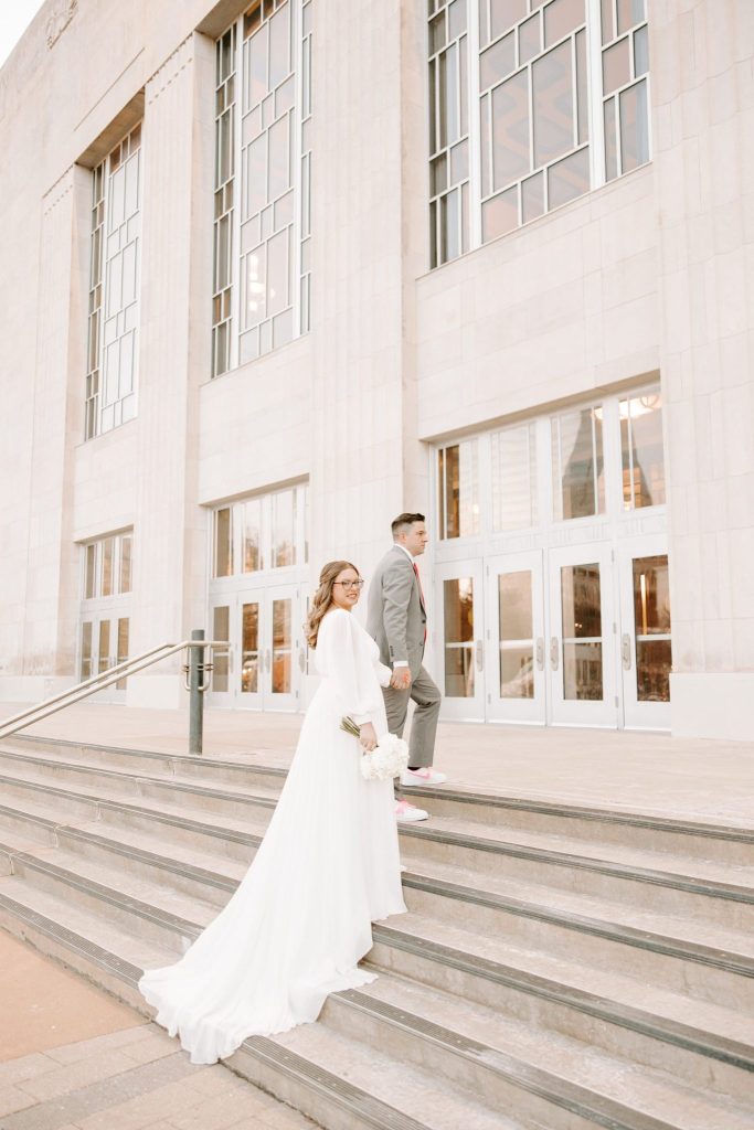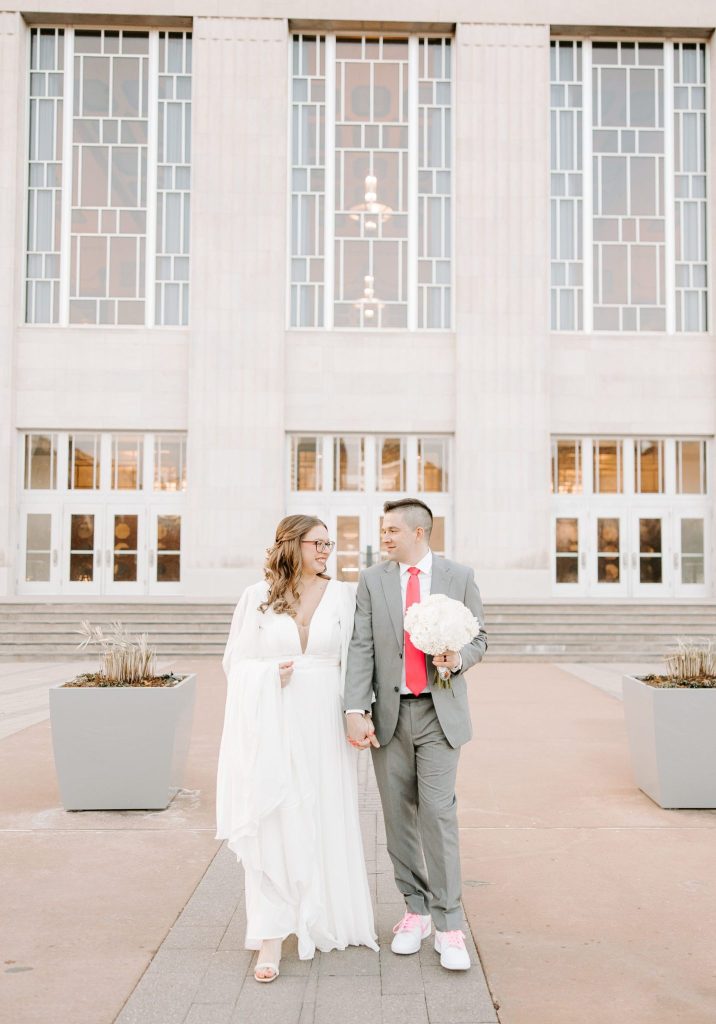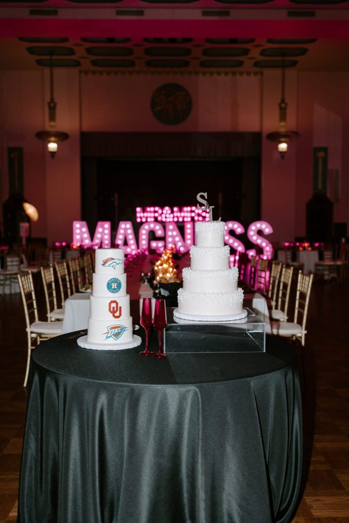 Lindsey + Shane had a classic black and white wedding at The Civic Center Music Hall filled with gorgeous white florals from Dee Flowers. This romance filled day was captured beautifully by Raleigh Fulks Photography. The wedding reception was perfect for these sports fans with their themed cake, mascot appearances, and delicious catering by Harris Custom Catering.