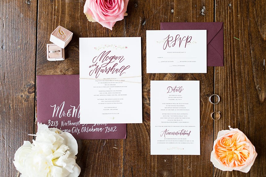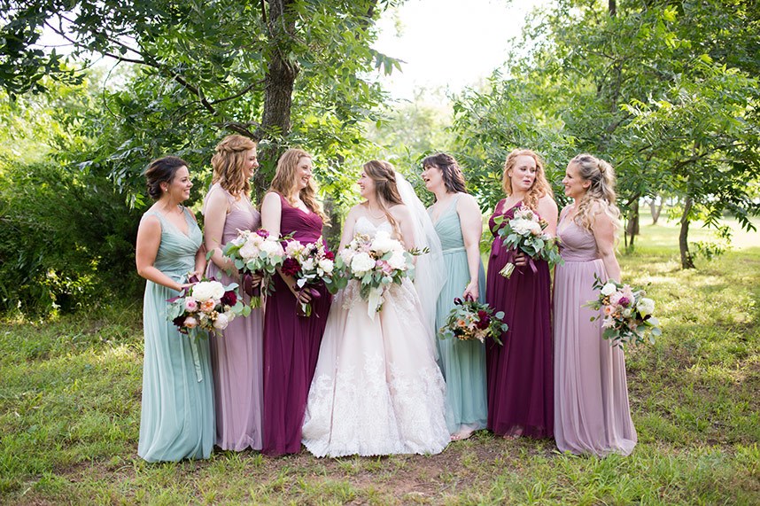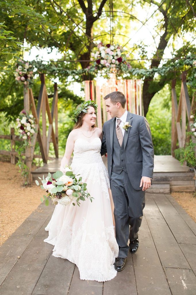 Megan and Marshall’s rustic Southwind Hills wedding certainly took our breath away! An overflowing cake table with six yummy treats by Amy Cakes and dreamy burgundy, peach and blush florals by Trochta’s Flower and Garden Center helped create an atmosphere full of love. Wearing a stunning lace Morilee gown from Bella Rose Bridal, Megan truly glowed on her big day! Cheers to the sweet couple!