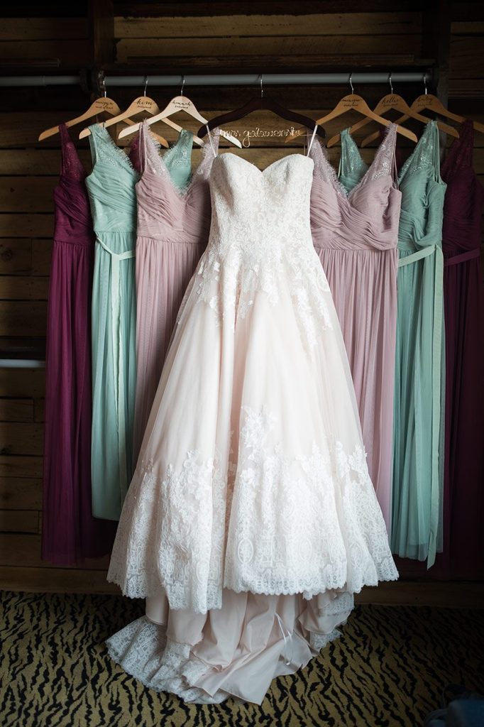 Megan’s mother passed away when she was 8 months old and the couple enjoyed incorporating her as much as possible. Megan wore a garter made out of her mother’s wedding dress as well as handed out handkerchiefs from her mother’s dress to Megan’s mother’s family. Megan also had a picture of her mother tied to her bouquet.