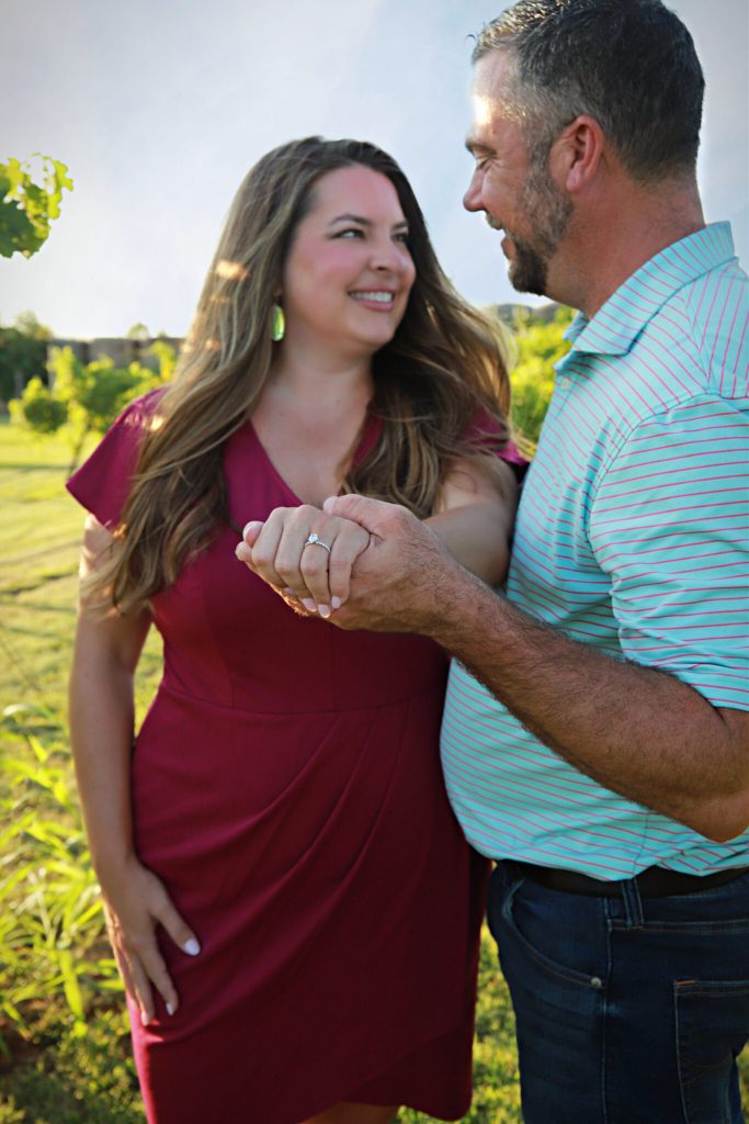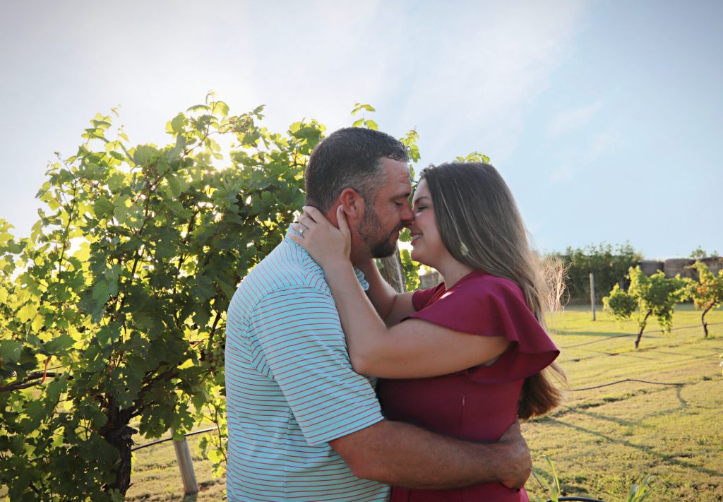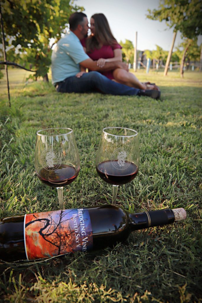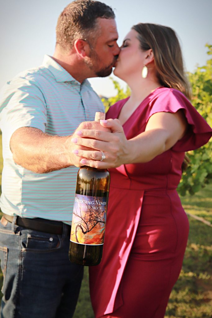 Nestled on 10 picturesque acres in Yukon, Oklahoma, Bridging Vines Winery & Brewery is a family-owned vineyard, farm winery, and brewery that offers a truly one-of-a-kind event setting. Recently, newly engaged couple Traci & Will chose this scenic spot for their engagement session — and the results were stunning.
