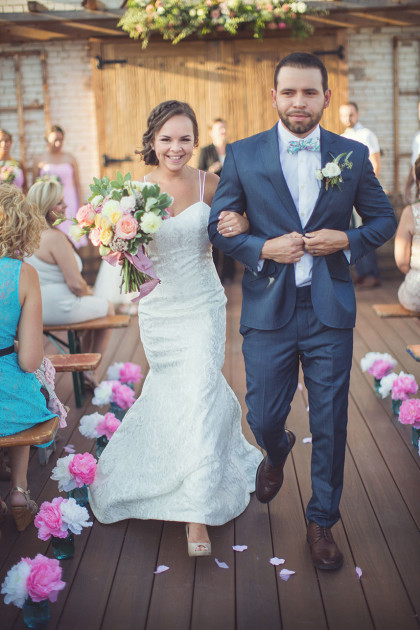 As the ceremony began, Juan and Kingston stood with the couple’s officiant in anticipation of the bride. Brooke, accompanied by her father down the aisle, stunned her future husband and guests in a gorgeous Hayley Paige gown. As soon as Brooke and Juan met eyes at the altar, they became overwhelmed with emotions of love and excitement. The ceremony was just how they envisioned it – a celebration of the genuine love the couple have for each other. The newlyweds and guests enjoyed Big Truck Tacos during the reception as well as an open bar with homemade sangria crafted by the mother of the bride. The beautiful evening was filled with music, games and mingling with guests.