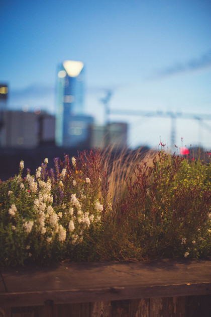 The couple’s wedding day, September 12, 2015, quickly arrived. The pair opted to have their wedding and reception on the scenic rooftop of Plenty Mercantile in Oklahoma City. The wedding had unique touches reminiscent of the couple including mason jars with miniature chalkboards and heart-shaped sparklers for their exit. The guestbook was a shadowbox holding engagement photos alongside wooden hearts.