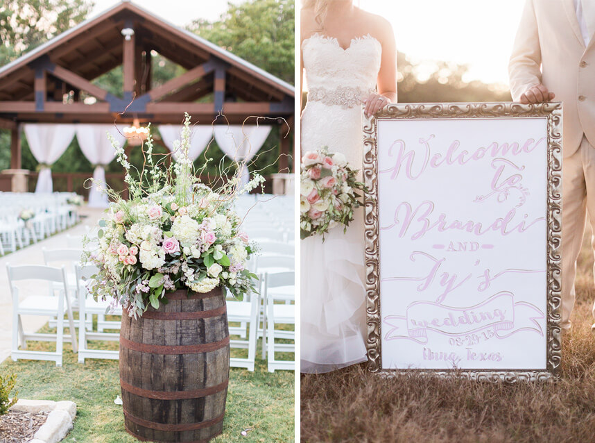 We love this rustic chic wedding by Tammy Odell Photography! Tammy caught all of the sweet details perfectly, and you can truly see the love beaming in every photo! The bride wore a stunning Tara Keely gown from J.J. Kelly Bridal Salon that was accessorized beautifully with a beaded belt and cascading veil. The ceremony was held outside under the summer sky, and then the party was moved indoors where guests were surrounded by lush blooms in soft white and pink hues. For their getaway, the couple left with a balloon send off, which we love! Cheers to Brandi and Ty!