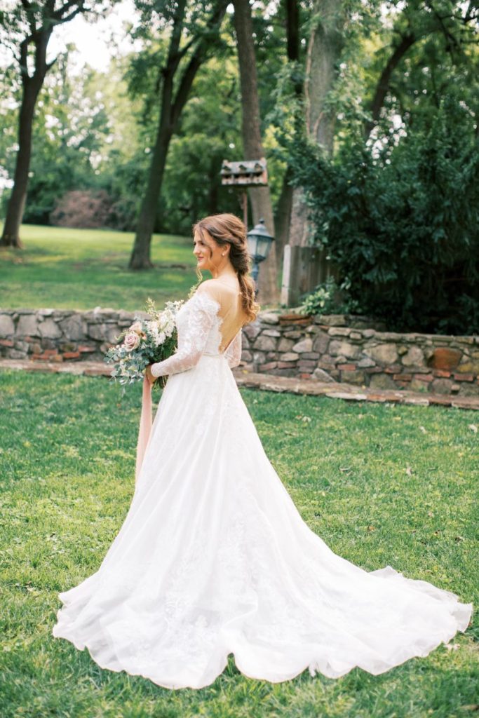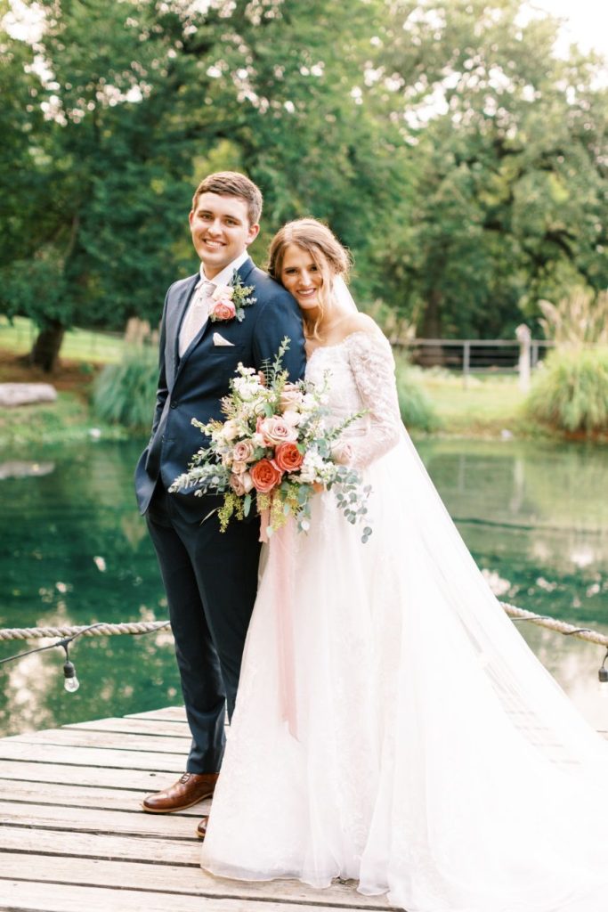There is so much to love about Lauren and Isaac’s rustic lakeside wedding at Hillside Manor! The high school sweethearts were married beneath a linen draped altar with the venue’s water as a backdrop. Dusty pink roses, hellebore and eucalyptus arranged by Gorgeous Blooms Design were on full display from the altar-scape to the bride’s bouquet and reception decor, perfectly complementing the couple’s rustic design. Bride Lauren was stunning an a bateau-neck lace ballgown with a surprise tousled ponytail woven by Hayley Hall Hair Bridal finishing her look. Just wait til you see the joyful images captured by Carsyn Craytor Photography of the new Mr. and Mrs. below! Cheers to the Wheelers!