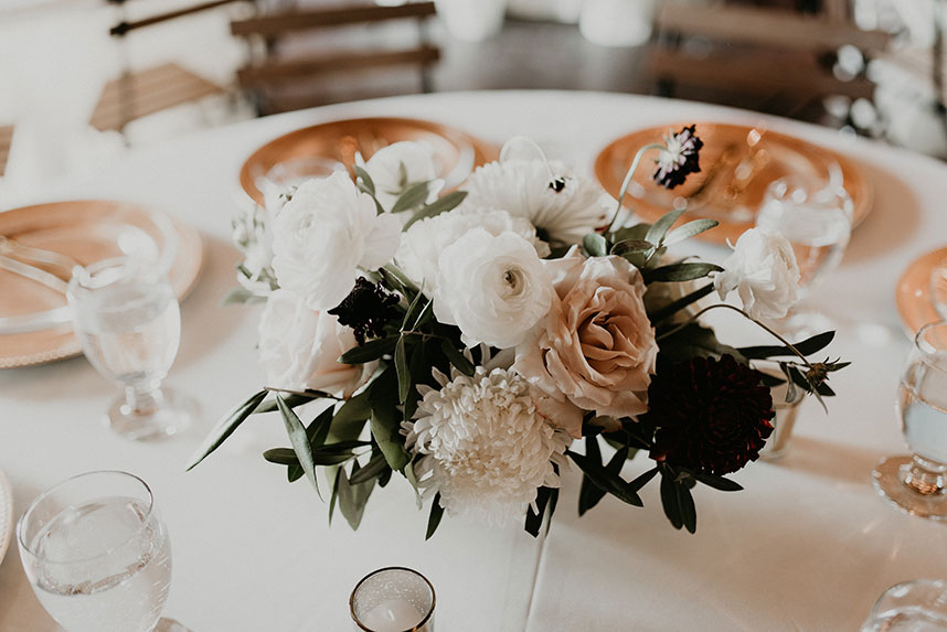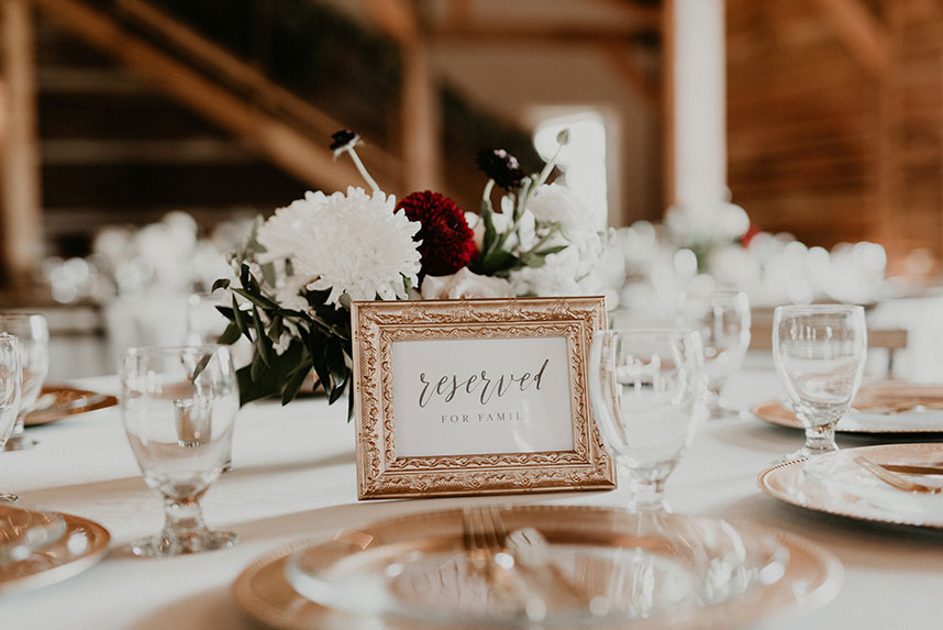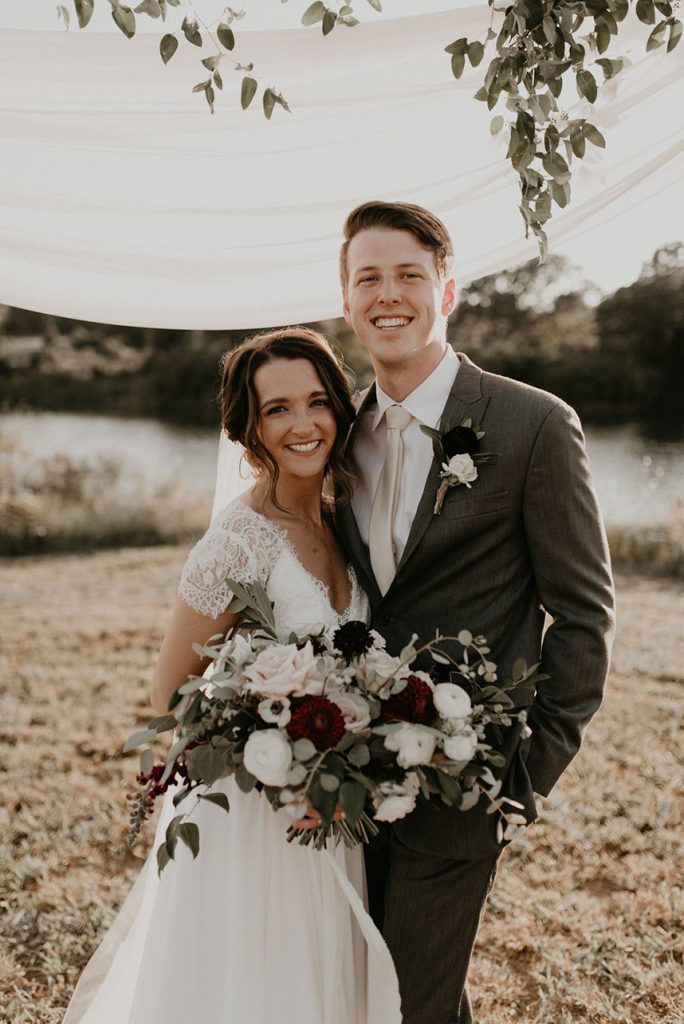 The sweet celebration featured lots of greenery and wood textures with rentals from Marianne’s Special Event Solutions and Party Pro Rents that perfectly complemented the rustic barn venue. Ever Something designed elegant earthy floral arrangements in hues of cream and gray with pops of burgundy. The delicious cake from The Round House Bakery was carrot cake with cream cheese frosting and vanilla with buttercream, and cutting it was one of the couple’s favorite parts of the day. Blue Label Bartending crafted scrumptious cocktails and guests danced well into the night until it was time for the dazzling sparkler exit. Rylan and Trevor love to revisit their perfect day through the timeless photos captured by Peyton Rainey Photography and the emotional video by Redeemed Productions.