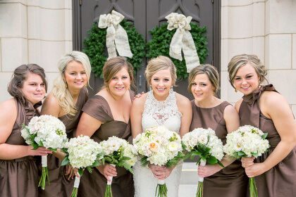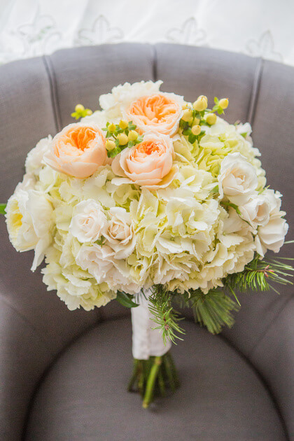 Morgan Alexandra Hannabass and Fred Alexander Chapman IV were married on January 3, 2015 at the First Presbyterian Church of Ardmore. Morgan, escorted down the aisle by her father, was stunning in an elegant ivory appliqué mermaid-style gown with a high neckline. The bride carried a romantic bouquet of white hydrangeas, cream vendela roses, peach David Austin roses, white spray roses and white hypericum berry accented with port orford cedar and princess pine. Morgan and Fred were blessed to spend their special day accompanied by a wedding party of 20 of their closes friends and family members.