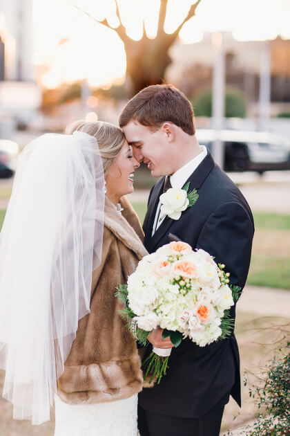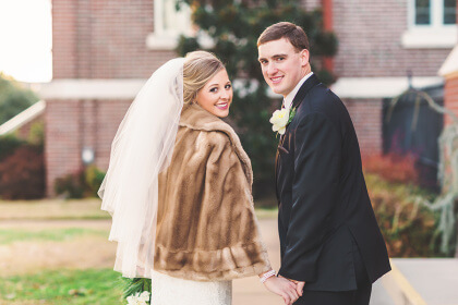 Although they had known each other since 2009, Morgan and Fred didn’t begin dating until three years later when his fraternity and her sorority were paired for homecoming at Oklahoma State University. On New Year’s Eve 2013, Fred proposed to Morgan in true cowboy style on his family’s ranch.