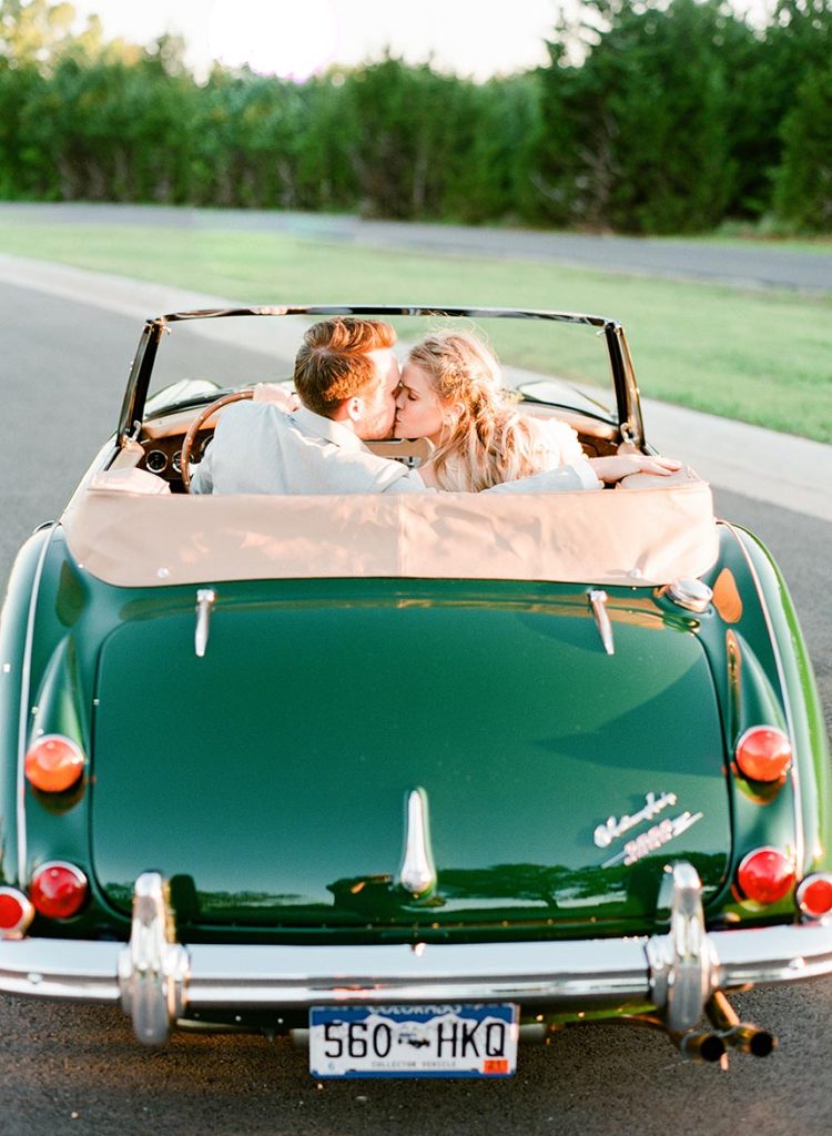 The night came to a close with a big sparkler exit as the bride and groom made their way to Dustin’s dad’s classic emerald green Austin Healey car. Just past the sea of sparkling light, the couple drove away down the dreamy tree-lined street. With a fairytale wedding in the books, it was the perfect way to begin their new life together – in the town where their love story first began.
