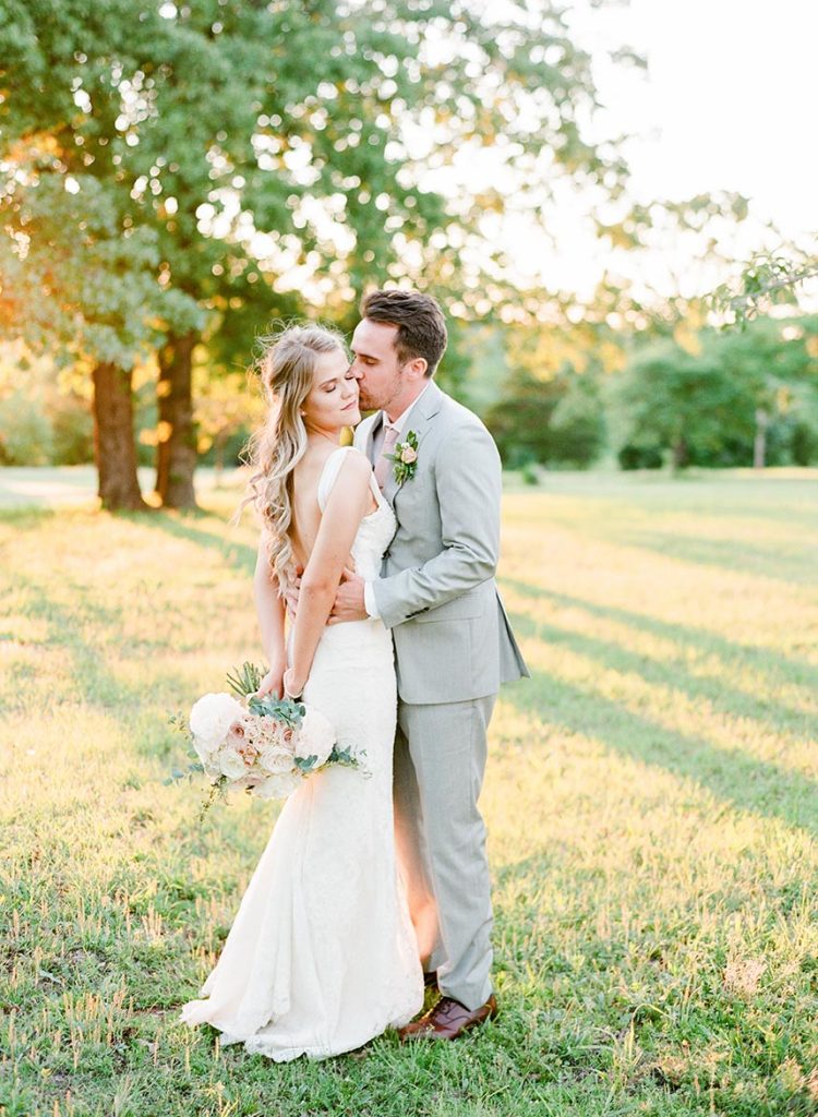 “I tried on several different styles [while gown shopping], but I couldn’t picture myself in anything else. I was even able to ‘customize’ the dress a little bit by adding beading around the bodice and length to the train,” Kirstin says. The ceremony was traditional, but the bride and groom wrote their own vows. They both expressed their gratefulness for each other’s support and unconditional love. “I am not sure a lifetime is long enough to give you all you deserve, but I promise the rest of my days I’ll always put us before me,” Dustin told Kirstin. “You are kind, selfless and courageous. You encourage me to be my best self and give me the strength to face things that seem insurmountable,” Kirstin told him. After the conclusion of their heartfelt vows, the officiant declared them husband and wife, and Dustin kissed his bride.