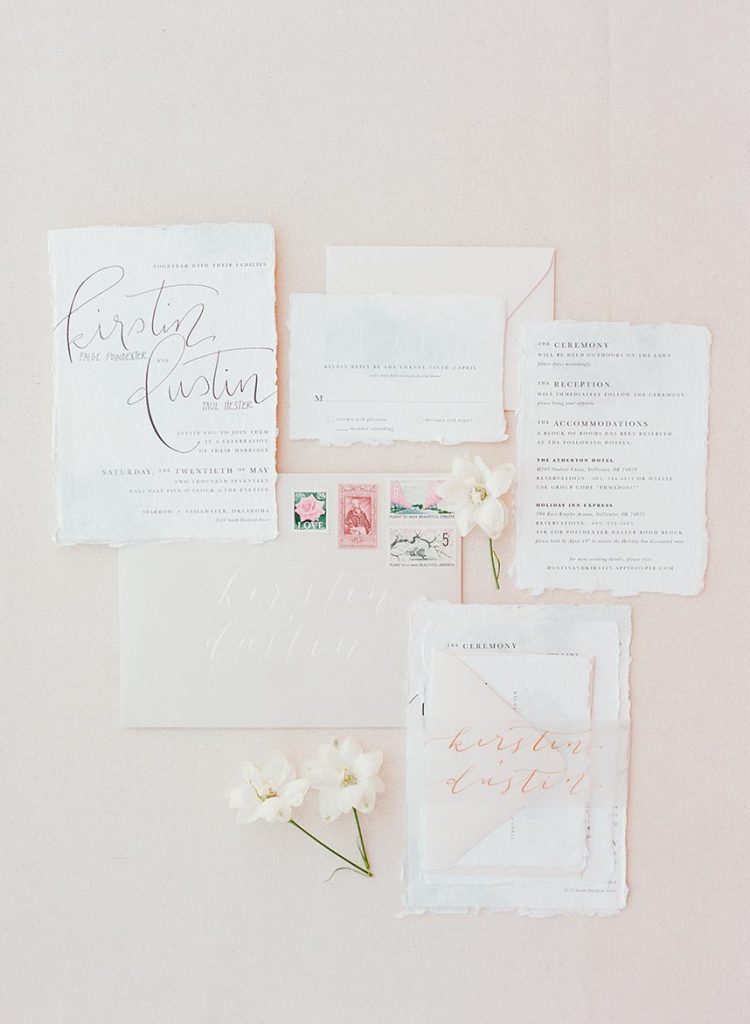 Beautifully light and airy, Kirstin and Dustin’s rustic pastel Oklahoma wedding at Sparrow is full of dreamy details. Kirstin’s beautiful Katie May gown from Meg Guess is stunning, and we can’t get over the delicate lace detailing and dramatic back! With signage and calligraphy from Laurel and Marie and rentals from Marianne’s, the beautiful reception space at Sparrow was dressed to the nines by Forever Cole Events. Guests dined on delicious catering from C2 Catering and an array of gorgeously decorated wedding cakes from The Round House Bakery. Scroll through the incredible photos below and be sure to grab a tissue and catch the heartwarming video by Pen Weddings. Cheers to this sweet couple!