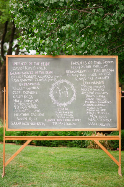Jayme Elizabeth Glover married the man of her dreams, Joshua Rodric Phillips, on May 24, 2014, at Jayme’s parents’ home in Edmond, Oklahoma. A little Oklahoma weather made for a quick change in plans for the ceremony. Lindsay Gibson, the skillful wedding planner, rushed into the room the bridal party was getting ready in and gave Jayme two options: stick to the original plan and get married in the rain or move the location to the tent where all the guests were already seated. Looking back, Jayme laughs a bit at herself because she took the time to seriously consider her options before choosing to move the ceremony under the tent. Then Lindsay sprung the second rain-induced surprise, Jayme would need to be covered in a tarp to get from the house to the tent! Luckily between Lindsay and three selfless ushers, Jayme was able to stay dry from the house to the tent where she was greeted by an uproar of cheers from her guests.