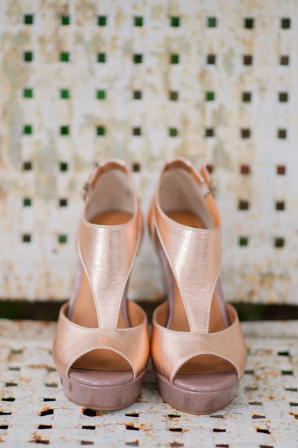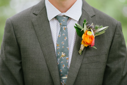 After arriving safe and dry to the ceremony, Jayme was escorted down the aisle by her father, David Glover. She wore a beautiful ivory gown by Hayley Paige that featured a sweetheart neckline, ivory lace over a champagne bodice, and silk georgette flounced A-line skirt with a chapel-length train. Jayme chose to forgo the traditional veil in favor of the flower crown her mother, Kim, wore on her wedding day. Poppy Lane Design added some greenery to make it unique to Jayme. Josh’s wedding gift to Jayme was a necklace from his maternal grandmother, the first piece of jewelry Josh’s grandfather ever purchased his grandmother after they were married. Jayme decided to wear it on her wedding day along with delicate, handcrafted bracelets created by her aunt who also made bracelets for Jayme’s grandmother, mother and sister to wear.