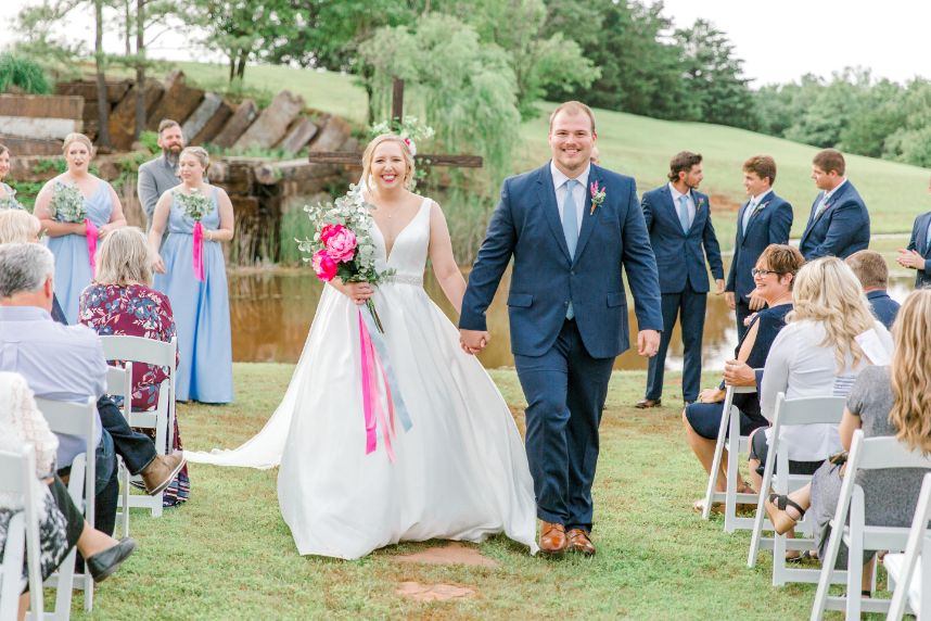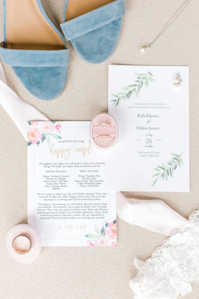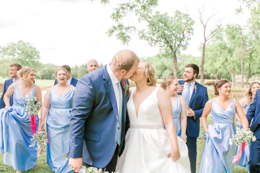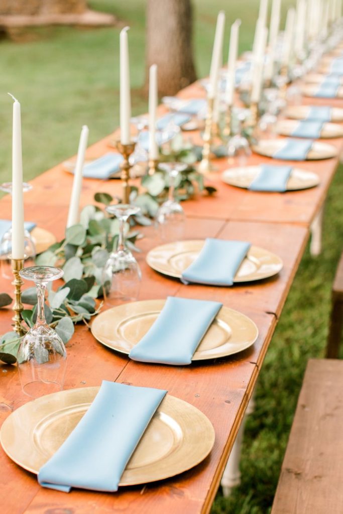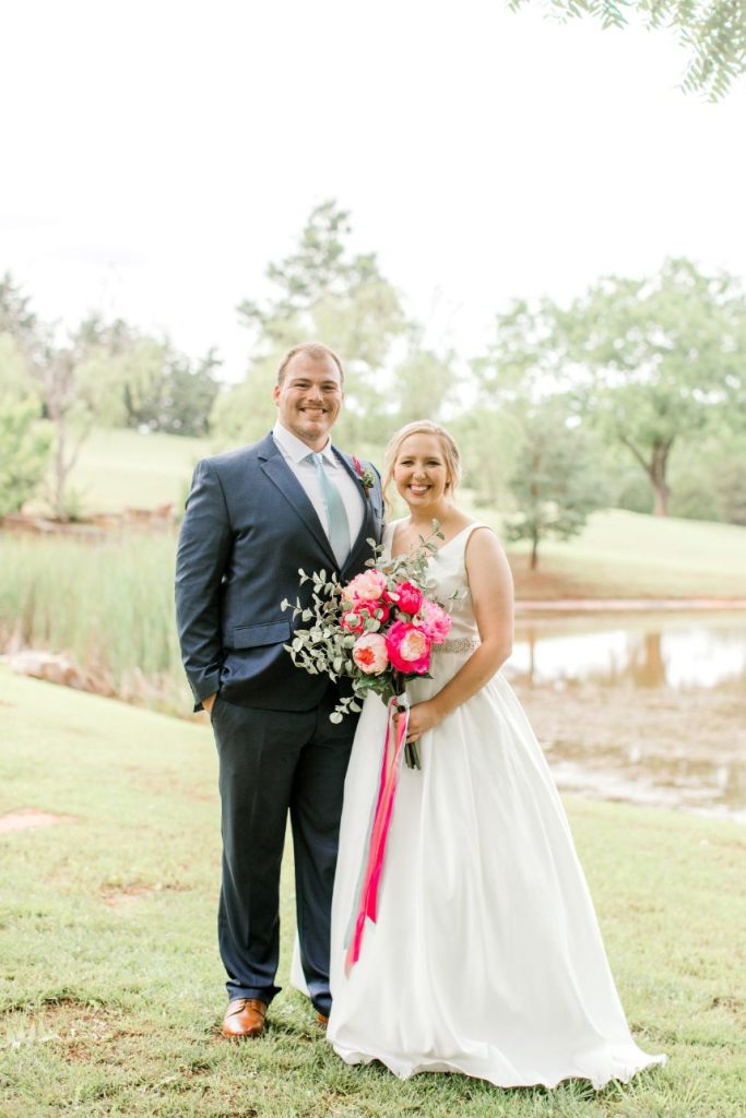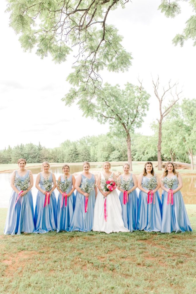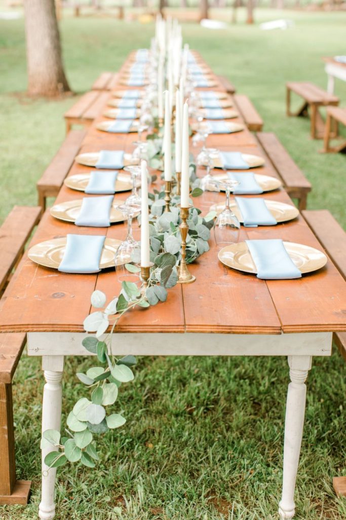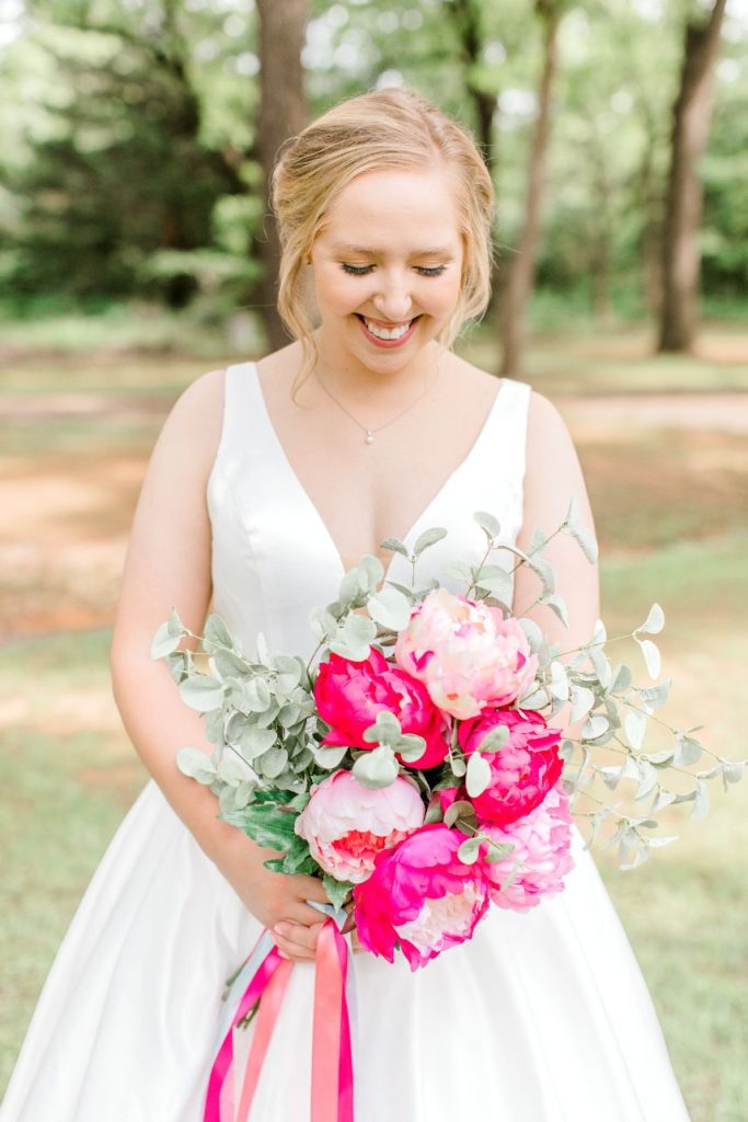 Kalli and Dalton held a gorgeous romantic and rustic wedding at Esperanza Ranch and it is so full of flair and color! Bright fuchsia blooms and soft eucalyptus and pastel blue accents create the perfect color combination for this rustic wedding with its touch (or ton) of romantic flair, which we love. Kalli is stunning in a satin, V-neck gown from Bella Rose Bridal with a gorgeous ballgown skirt and her simple bridal glam with a sweet coral-pink lip by Carolyn F. Beauty elevates her exquisite look even more. Showstopping tablescapes of flatware, pastel blue linens and eucalyptus-shrouded centerpieces with rustic furnishings from Marianne’s Rentals Special Event Solutions bring romance to an Arcadian-style landscape in this stunning rustic wedding! Cheers to Kalli and Dalton!