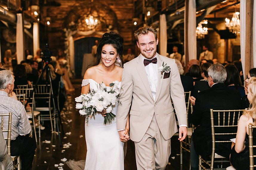 We are swooning over Alicia and Jeff’s rustic white wedding captured by Sarah Libby Photography! These two scream love in every way. With its perfect balance of rustic elegance, Alicia and Jeff couldn’t imagine getting married anywhere else other than Southwind Hills. The venue took care of everything from the florals to the catering for the couple making their special day relaxing and enjoyable. Amy Cakes created a stunning five-tiered white cake adorned with the most beautiful arrangement of florals. Of course, we couldn’t forget the couple’s stunning wedding day looks – bride Alicia looked gorgeous in a plunging Sherri Hill off-the-shoulder gown and her dashing groom was dressed in a light grey tuxedo from Bella Rose Bridal. Read more about how this lovely couple met on pages A1-A3 of the Fall/Winter 2017 issue of Brides of Oklahoma! Cheers!