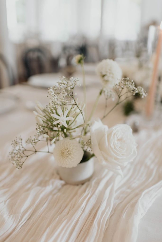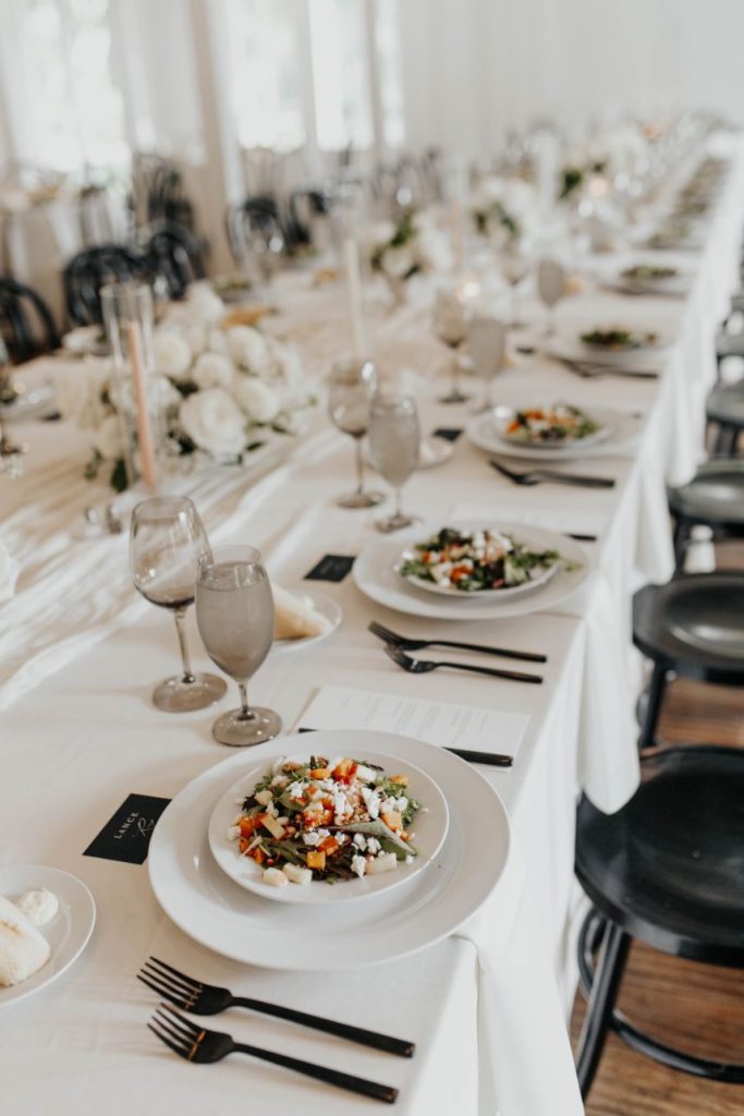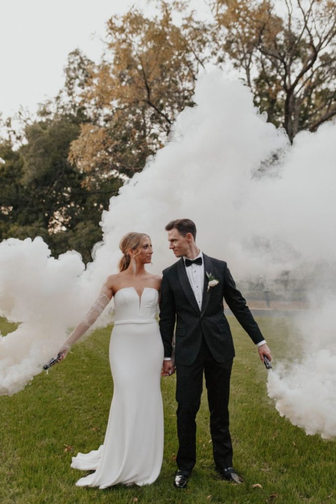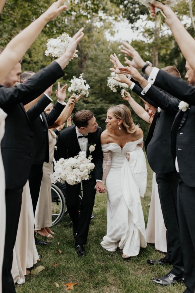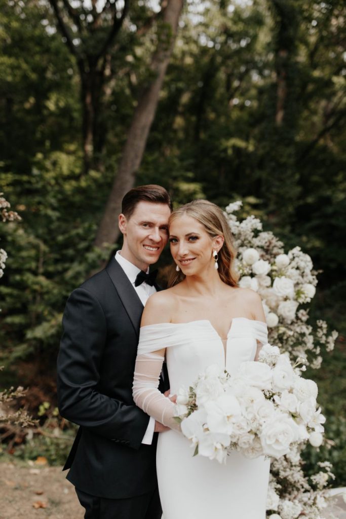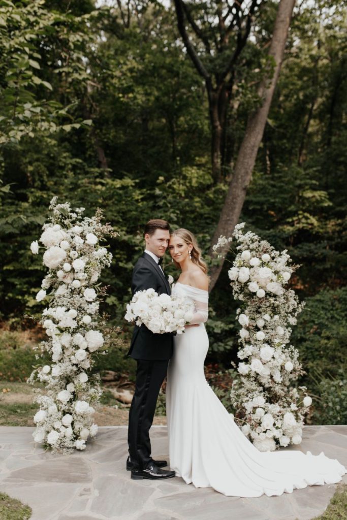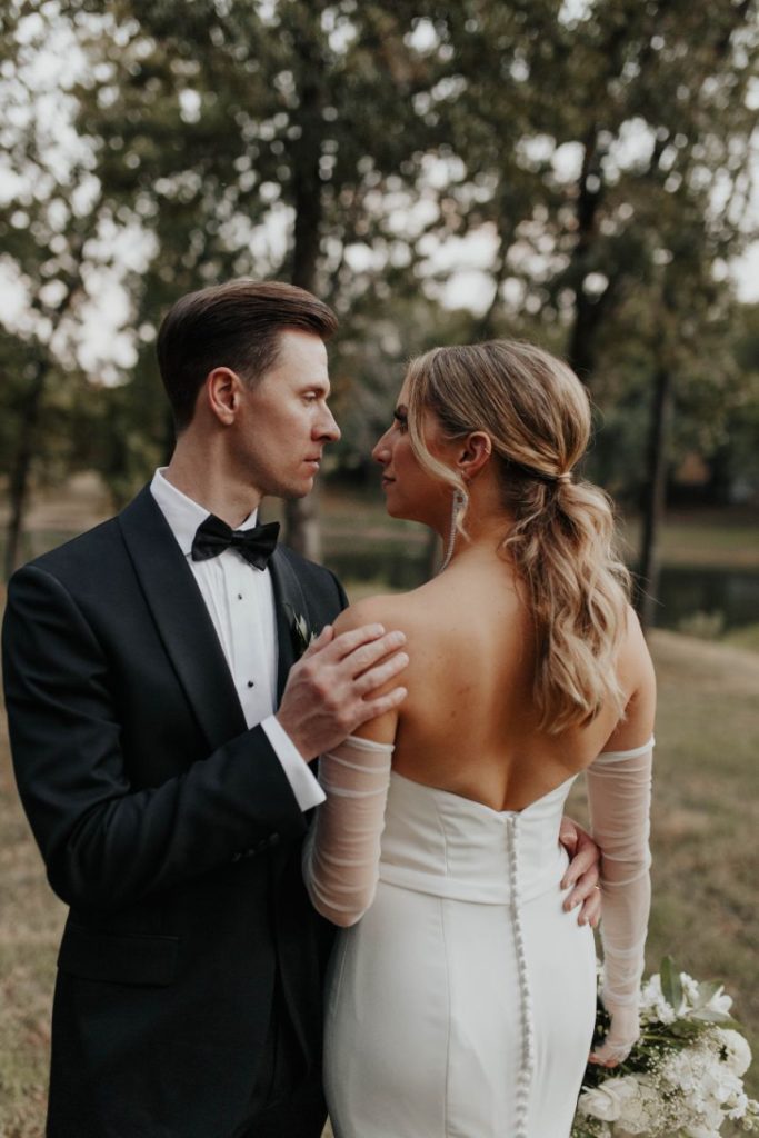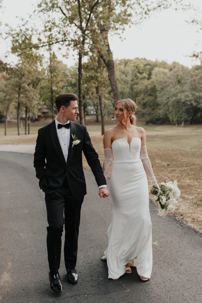 Samantha Thomas and Travis Peterson said, “I do,” with a minimalist modern wedding full of clean lines and neutrals. Originally from Wichita, Kansas, the couple met at their local gym. The two had mutual friends, but their paths had never crossed prior to seeing each other at the gym every day. Travis reached out to one of their mutual friends to see if she would set up a double date. The night went exceptionally well, but Travis forgot to ask Samantha for her number. Nonetheless, Travis mustered up the courage to DM Samantha to ask for her number. Travis and Samantha planned another date, and the couple has been together ever since.