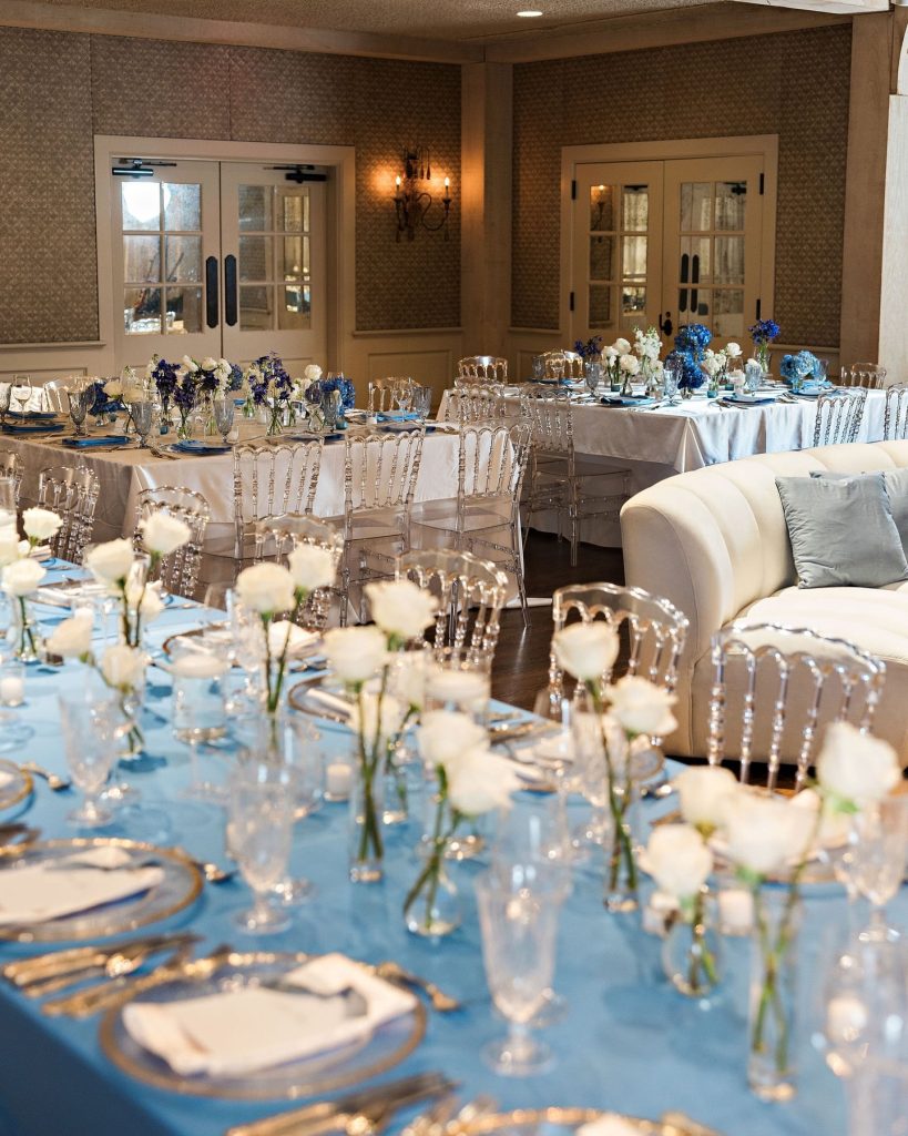 Details, details, details! From custom-illustrated cocktail napkins to dreamy blue linens and stylish lounge setups, Sarah & Kyle’s elegant Tulsa wedding was one for the books.
