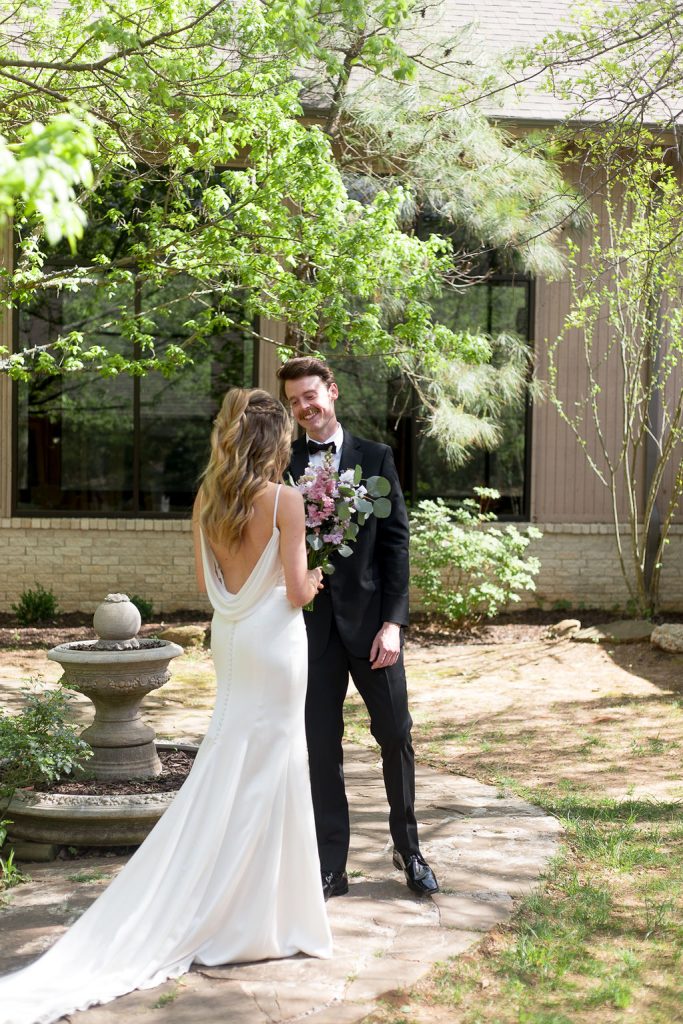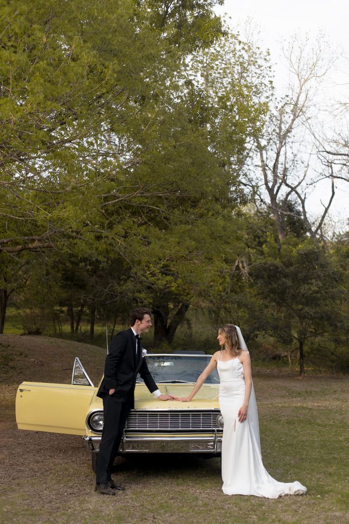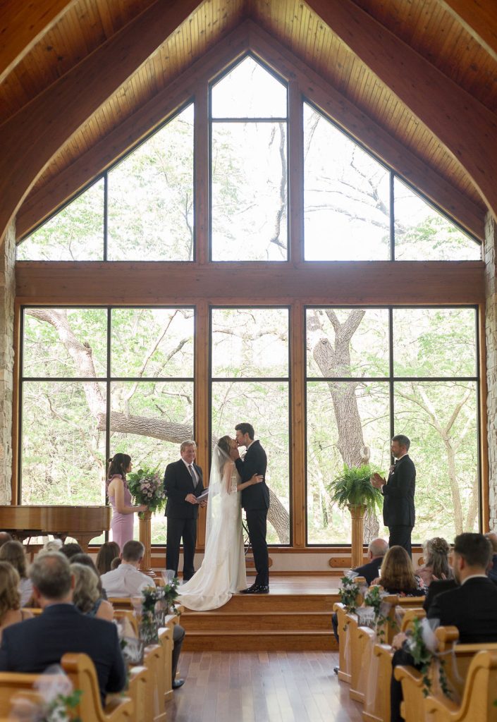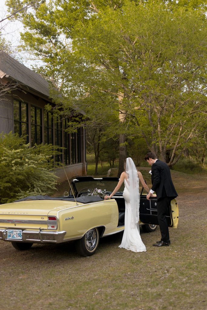 Sarah & Teague’s spring wedding at Thunderbird Chapel in Norman was full of timeless charm! From their pastel palette and traditional chapel ceremony to their sweet pup serving as ring bearer and a vintage yellow getaway car, every detail was picture-perfect.