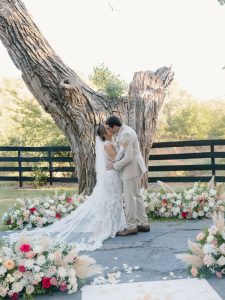 Savannah & Cesar’s summer wedding was filled with joy, faith, and heartfelt cultural traditions. Savannah described walking down the aisle with sunshine streaming through the windows as an unforgettable moment—especially seeing her husband tear up, something she had never witnessed before. Their ceremony felt deeply personal, highlighted by a unity cross set to one of their favorite worship songs and a floral cross centerpiece. At the reception, the couple beautifully blended their heritages with a dessert table featuring Czech kolaches and wedding cookies, paired with Hispanic touches like a live mariachi band, cantaritos served in custom clay cups, Mexican candies, and traditional pan dulces. Every detail came together to honor their love, their families, and their shared cultures in the most joyful way.