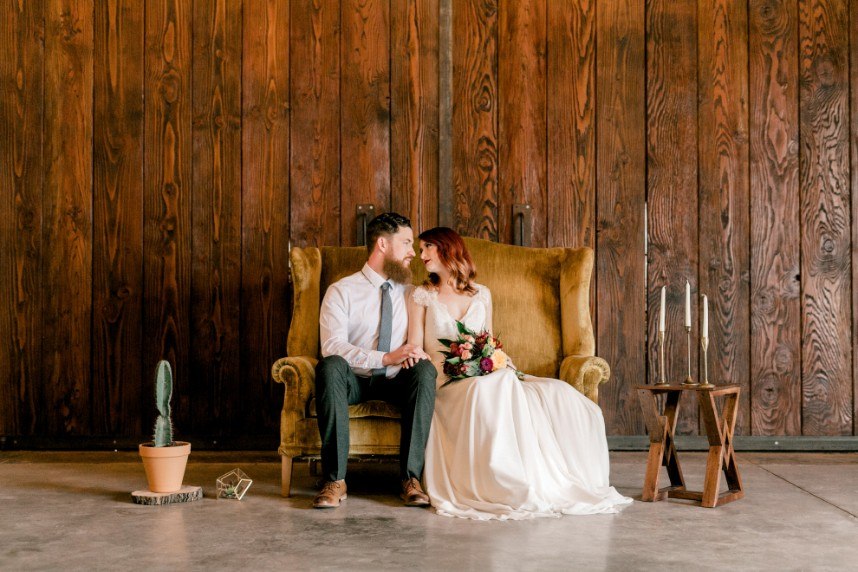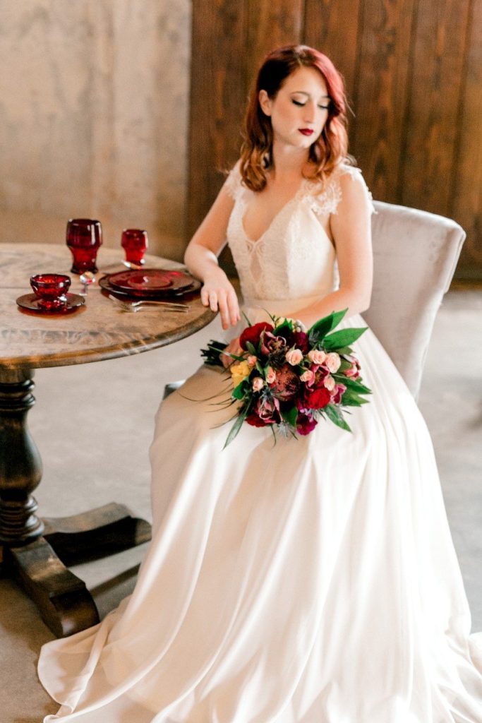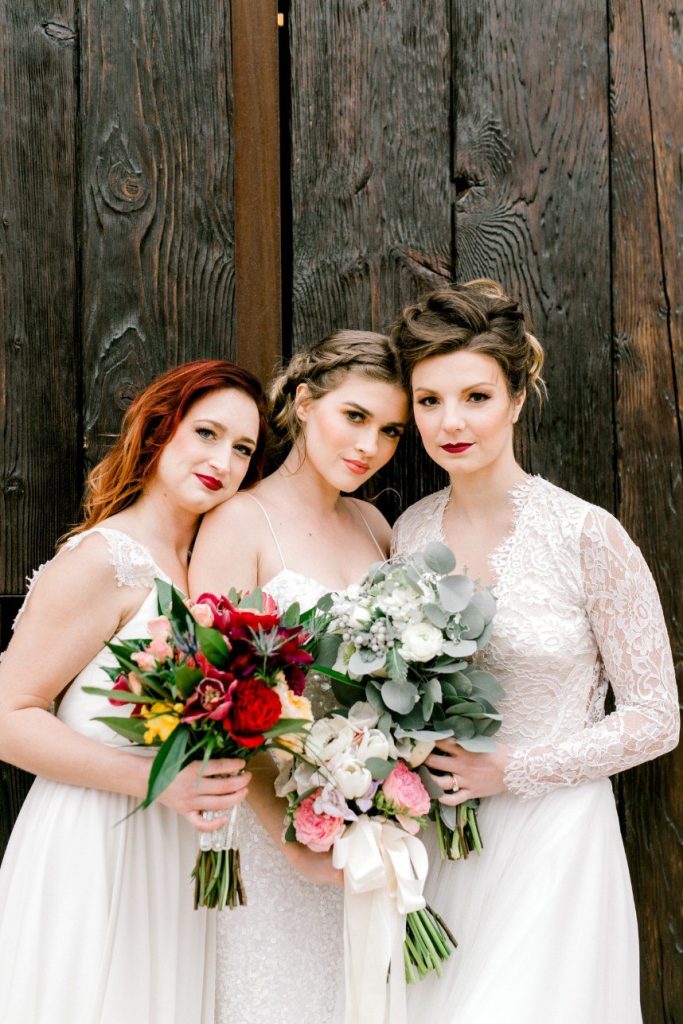 Winter, spring, summer or fall. All you have to do is call on your local Oklahoma wedding vendors, and they’ll be there! Cheesy Carole King reference aside, we’re absolutely loving the variety of looks featured in this gorgeous seasonal styled shoot captured by Emily Nicole Photo. The Baumberhof served as the perfect backdrop for each season’s vision, going to show that this venue can accommodate any and every bride’s taste! From fun and flirty updos to bold and dramatic makeup, Trichology Salon provided flawless glam for all three of our beautiful brides. Tony Foss supplied stunning bouquets, while Chantilly Couture and The Wardrobe Modern Menswear contributed chic attire for our models. Keep scrolling to get inspired!