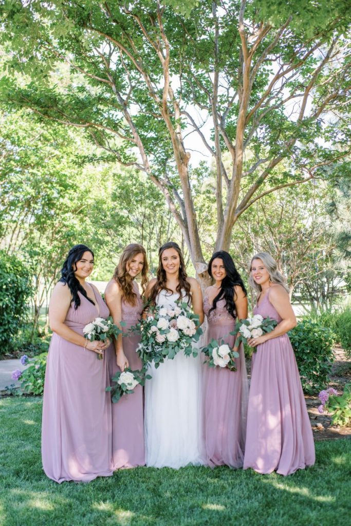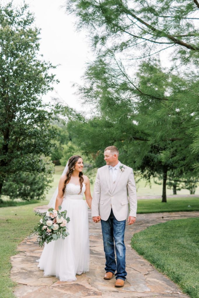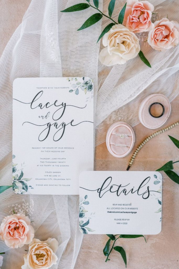 Light, airy and made up of all things romance, Lacey and Gage’s summer wedding at Coles Garden Wedding and Event Center was so sweet we might have a cavity! Soft and delicate tones of mauve, pale pink and white create an air of romantic elegance that we simply adore. Runaway Belle Vintage Rentals provided perfect vintage velvet couches fit for royalty as well as the sweetest little lemonade stand we ever did see. Bride Lacey looked absolutely breathtaking in a Casablanca sheath gown from Bella Rose Bridal – Edmond topped off with a lace-edged sweetheart neckline and a stunning cathedral-length veil. After the ceremony, guests moved inside the venue for luxe reception dining among effortlessly chic tablescapes. We always hear that rain on the wedding day is lucky, and it was even luckier that Oklahoma waited until everyone had made it indoors! Since the newlyweds had planned to have their dance floor out on the patio at Coles Garden, the change of weather kept everything cool and shades came down to block the rain. Lacey and Gage’s summer wedding was filled with so many precious memories they can relive again and again thanks to the photography and videography skills of Danielle Villamarette & Co., so there isn’t a single memory lost in the chaos of their pretty pink day. See their gallery and wedding highlight below, and read on for a note from the bride about one of the most important things she learned throughout the wedding planning process. Cheers to the Billegs!
