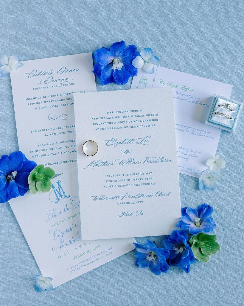 Elizabeth & Matt⁠’s wedding day gave “something blue” a new meaning! Cheers to the newlyweds and their gorgeous OKC celebration.⁠