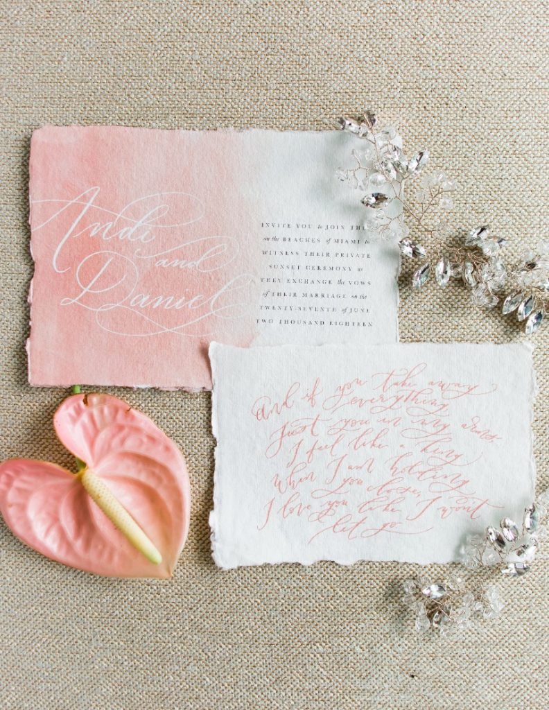 Andi and Daniel eloped in a dreamy South Beach destination wedding and we are obsessed! The couple used Oklahoma based Laurel + Marie for their invitations and calligraphy, and it was one of their very favorite wedding details! Cheers to Andi and Daniel and their fabulous elopement!