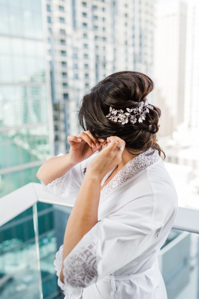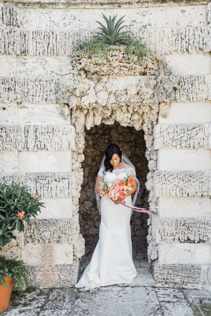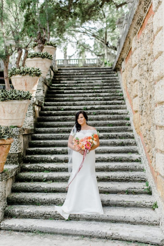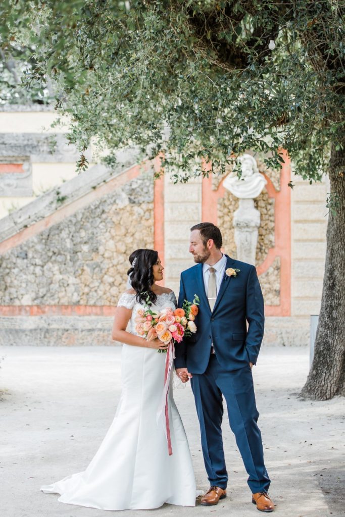 From the bride: “After we got ready, we read letters that we wrote for one another and exchanged gifts, then we had our first look and wedding portraits done at Vizcaya Museum and Gardens where we took the most gorgeous photos! We got to see each other before the ceremony, and we really liked having time just for ourselves.”