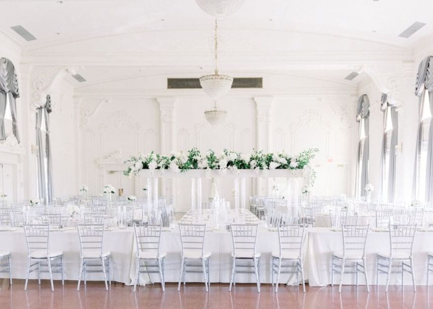 The historic Mayo Hotel with tall windows and high ceilings just blows us away with their indoor ceremony views. This venue can fit your style no matter what your wedding theme. With their luxurious style and pristine white walls – we are just loving the views!