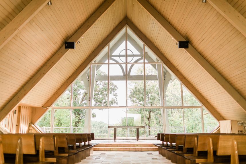 This beautiful venue located in Broken Arrow, is truly one-of-a-kind. With their breath-taking views both inside and outside, Glass Chapel is the perfect place to get the best of both worlds when it comes to views! Tall ceilings and windows matched with elegant wood, makes for the perfect natural light setting. The venue is nestled on seventeen beautifully wooded acres, offering both the ambiance of nature and the convenience of being in town.