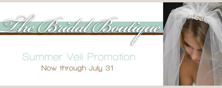 The Bridal Boutique in Norman is offering a great summertime promotion. Order your bridal gown from The Bridal Boutique during the month of July and receive a free veil as their gift to you! Call 405.801.3377 to set up your appointment today!