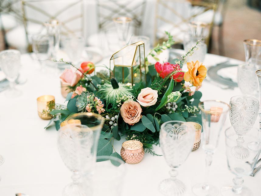 The beauty of Silverleaf speaks for itself, so Sarah opted for a soft color palette in gold, rose gold and greenery. She opted to spice up the course with fun, eclectic cocktail furniture from Prim Rentals. Sarah and Colby’s day lived up to all of the expectations the couple had, and they are so grateful to all who made it happen.