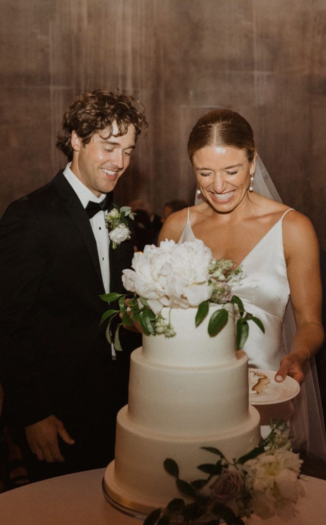 From the bride on her favorite memory: “Before dinner, we blessed the food together with a blessing borrowed from my Papa Coach, printed on the bread bags. It was important for us to thank God for letting us come together in celebration after a period of social distancing. It was so special to break bread and truly feel like one big family!”