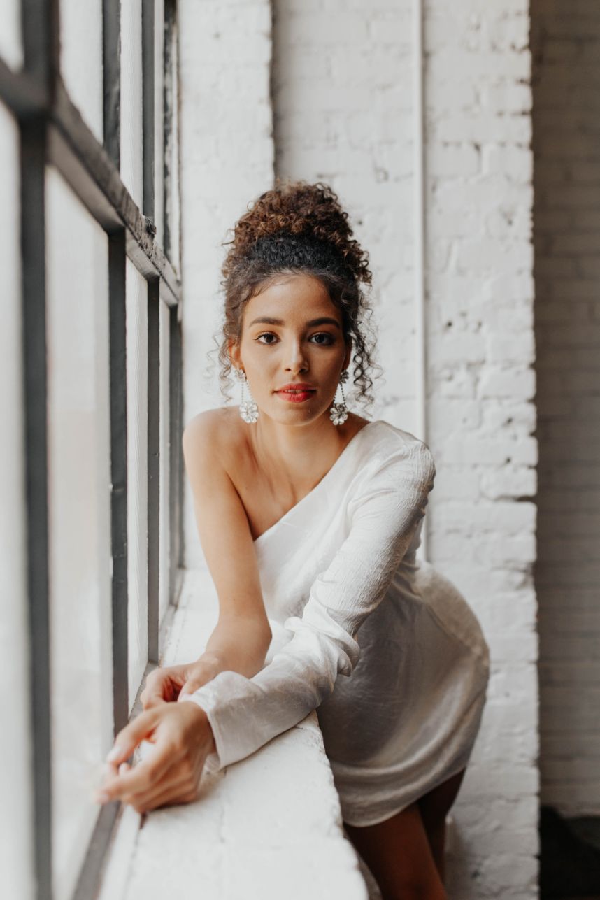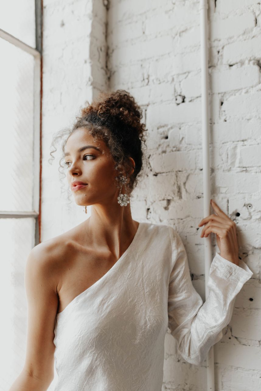 Statement pieces can totally set your bridal look apart! We brought together our fave new bridal accessories paired with modern hair and makeup styles from Oklahoma’s beauty pros that bring out the glow within each of these stunning models captured in warm yet airy shots by the ever-talented Caroline Eliza Co. The urban warehouse setting of The Venue at PLENTY Mercantile allowed for their natural beauty to shine, especially against a raw whitewashed backdrop. These bridal looks are so hot, you’ll want to recreate them yourself! Shop the statement piece of your dreams at the links below. Cheers!