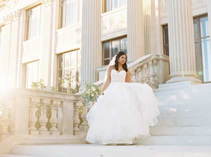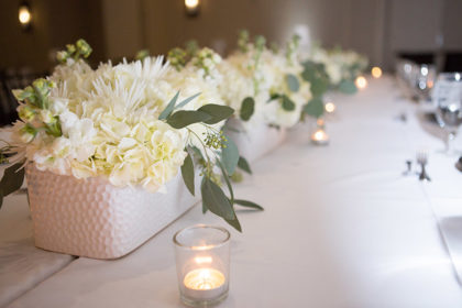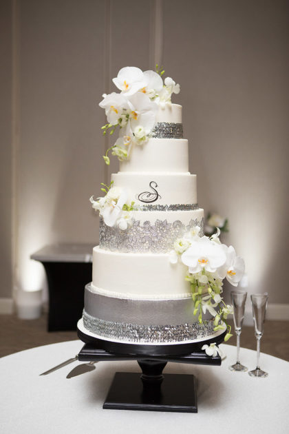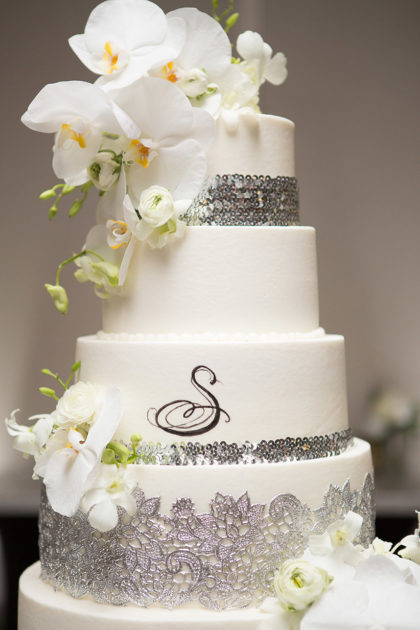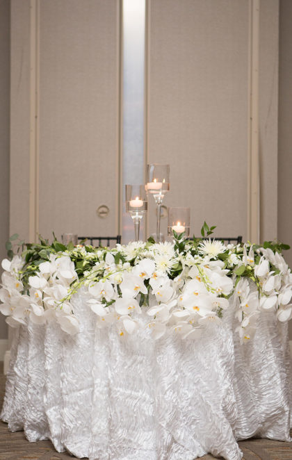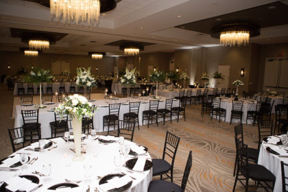 Stephyn and Ronnie’s reception was held at the Embassy Suites Hotel in Downtown Oklahoma City. The elegant reception area had enough space to hold the couple’s 300 guests. Tony Foss filled the room with beautiful flowers in varying shades of white. Tony knew the style the couple was going for and nailed it! The talented florist tied in tropical elements to add a touch of Hawaii from when Ronnie proposed. Amy Cakes made a delicious six-layer cake for all to enjoy.