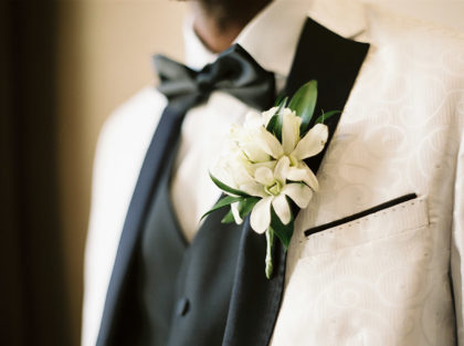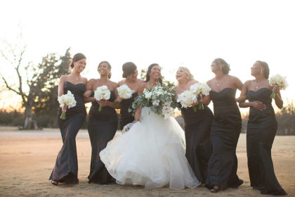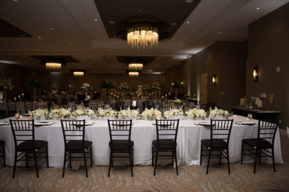 The couple knew they needed a full year to plan the wedding. It was also important to them to pick a day that was special to them. Stephyn always wanted to have a New Year’s Eve wedding with a timeless, elegant theme. She got just that in her special day! Her bridesmaids wore striking black dresses and the groomsmen wore black tuxes with white jackets from The Wardrobe. Bella Rose was so wonderful with helping the bride find her perfect two-in-one dress. With the boutique’s help, she was able to add a ball gown skirt over her mermaid-style dress. After the ceremony, she removed the ball gown skirt and wore the mermaid dress for the reception.