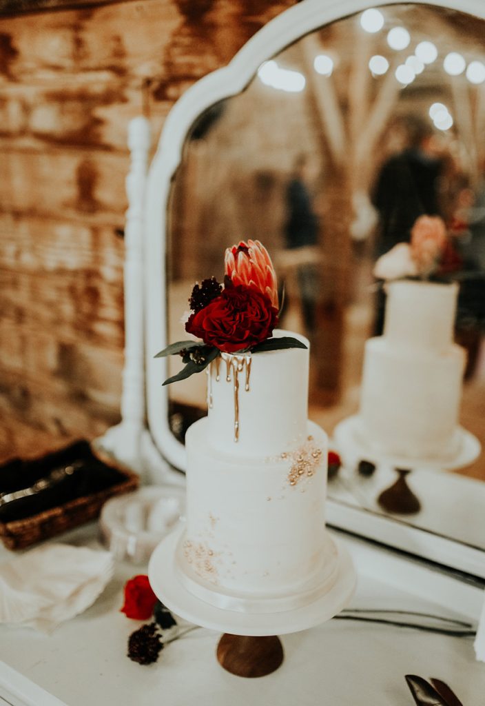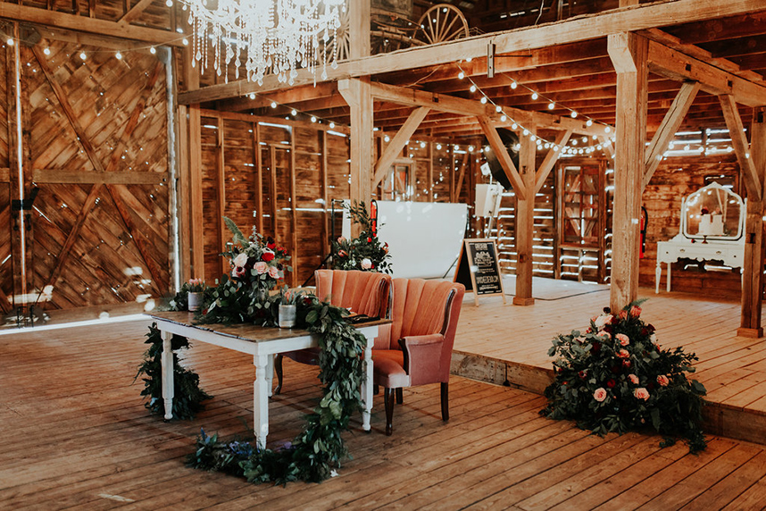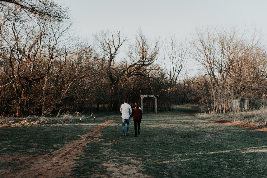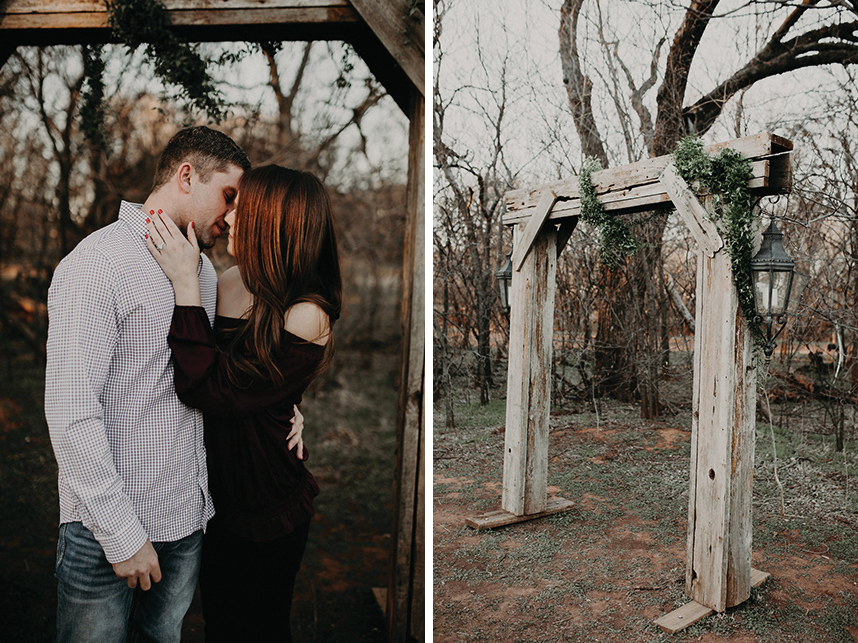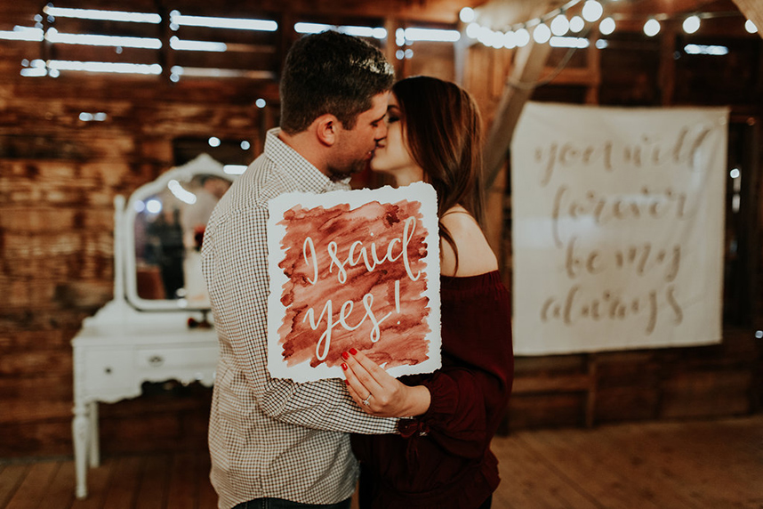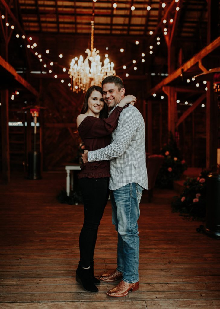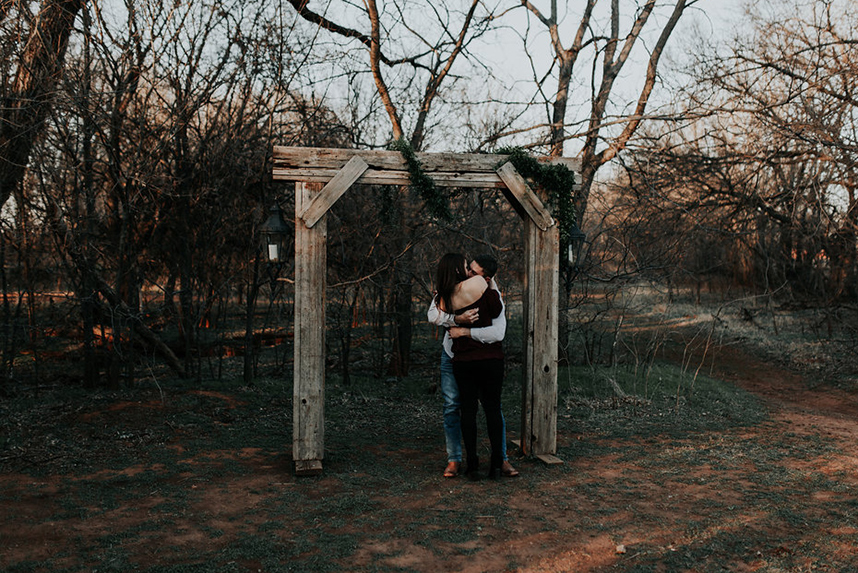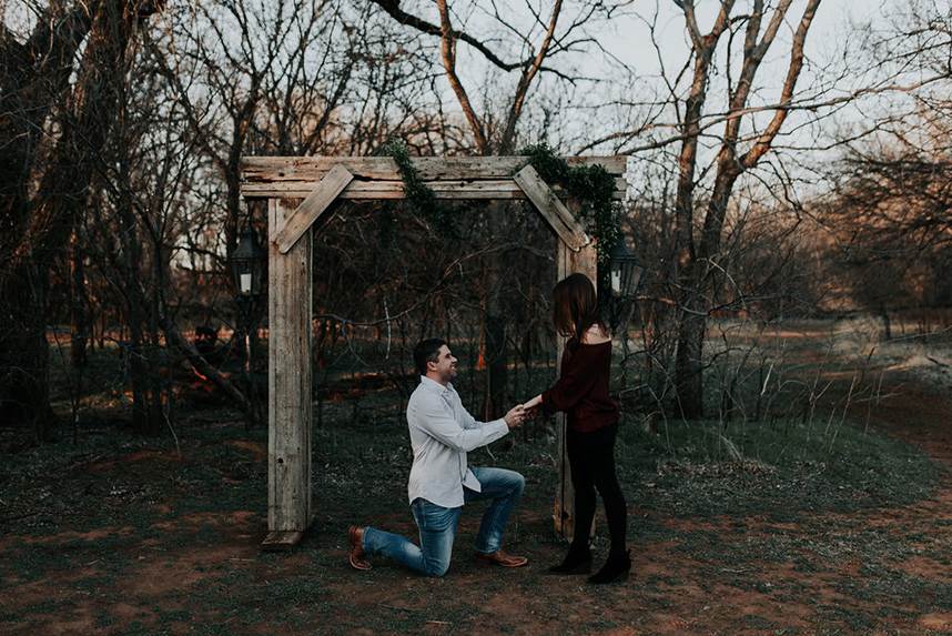 We’re sure you’ll fall in love with this styled proposal planned by Forever Cole Events – we know we did! The rustic Barn At The Woods in Edmond was the perfect place for Dustin to spend the evening with Britney just before popping the question. While Dustin had the wonderful help of Forever Cole Events to carry out his ideas, he had every detail thought out for how to make the night special for his soon-to-be fiancé. Upon arrival, Britney was surprised with a beautiful floral setup designed by Forever Cole Events, featuring a romantic arrangement of red and white roses, pink peonies and greenery galore. A live performance from Jason Young Band through Box Talent Agency kicked off their evening together, and the couple shared a dance to their favorite song. The couple enjoyed a savory three-course meal served by Abbey Road Catering, featuring poached salmon, filet mignon and honey balsamic strawberries while seated at the vintage farm table courtesy of Barn At the Woods and classic sofa from Ruby’s Vintage Rentals. Following dinner, Dustin led Britney outside to a rustic arch surrounded with string lights and finally knelt down on one knee! Britney joyfully said YES! Friends and family congratulated the happy couple and enjoyed an equally tasty and beautiful cake by Amy Cakes. Thankfully, Chelsea Denise Photography was there to capture every heartfelt moment of the evening. Cheers to the bride and groom-to-be!