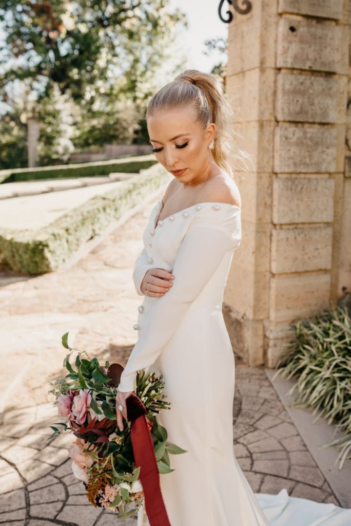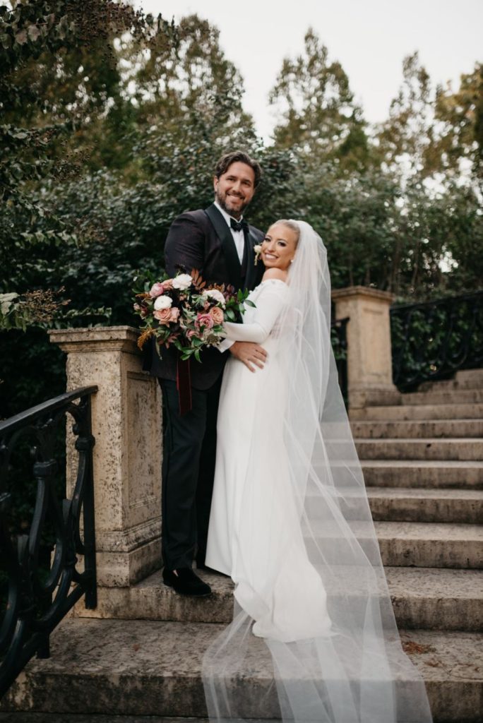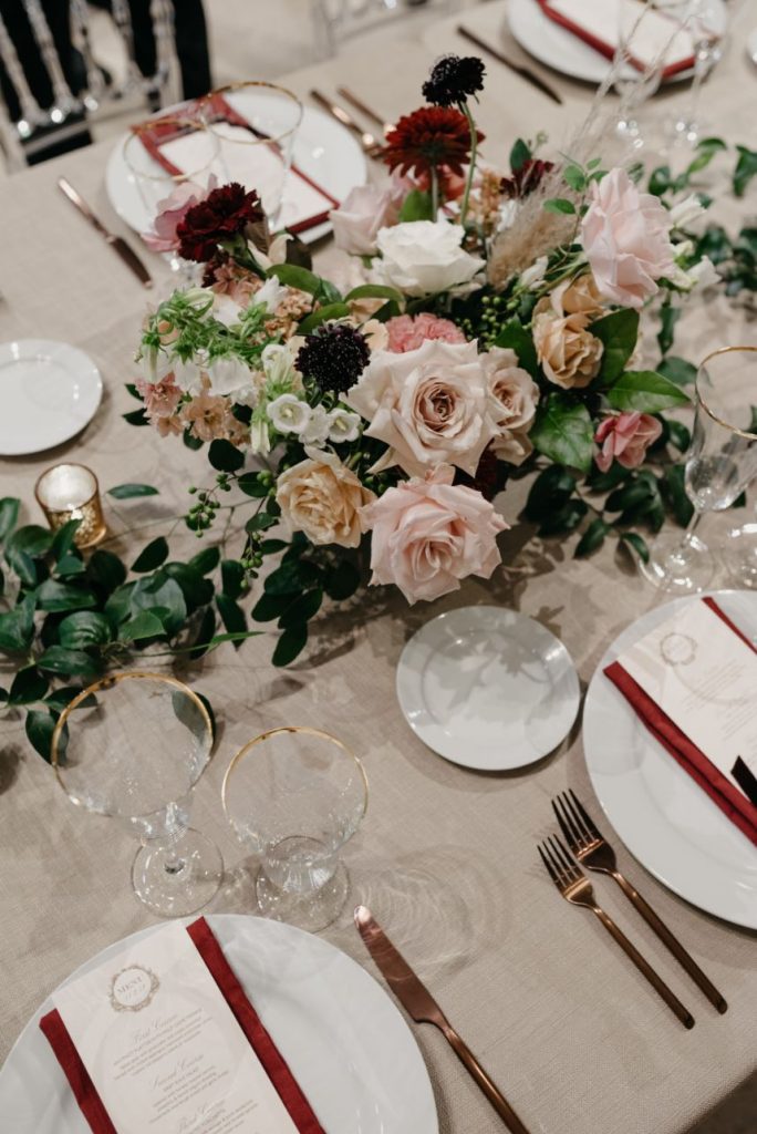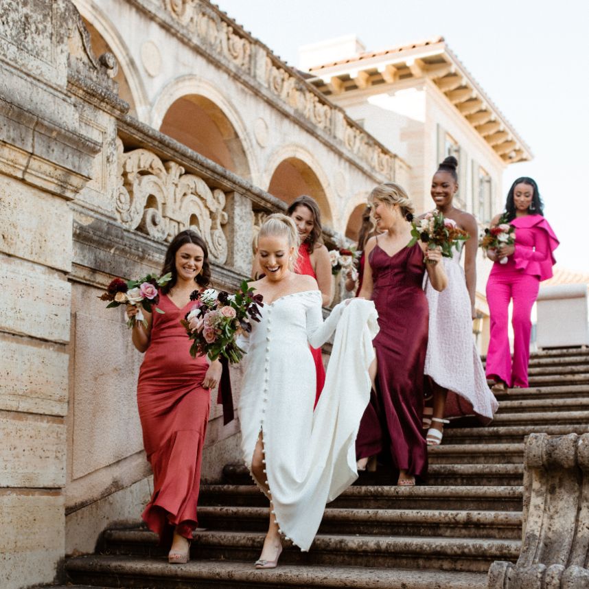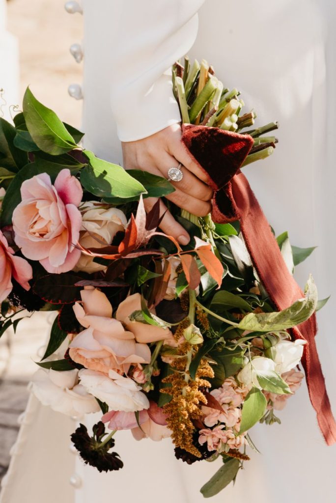 The sunset florals in Annie LoVoi and Deven Bowles’ November wedding were the key to creating their romantic and modern soirée. Blush pinks, deep reds and citrus hues established an alluring color scheme inspired by the shades of the sky at sundown. The floral arrangements by Ever Something really brought their color palette to life with rich pops of color. Ever Something planned every bit of this beautiful wedding as well! They used Party Pro Rents for decor and rentals to elevate the wedding’s modern romance and pull everything together. The talented calligraphers at The Letter Box contributed flawless calligraphy to Annie and Deven’s wedding invitations. Its effortless elegance gave guests a little sneak peek into what to expect for the big day! Now for the single thing that made all these fabulous vendors come together… the ring! Annie’s extraordinary ring from Naifeh Fine Jewelry is the ideal accessory to symbolize the love she and Deven have for one another and the commitment they made on this day. All our best to the happy couple! Keep scrolling to read about the bride’s favorite memory!