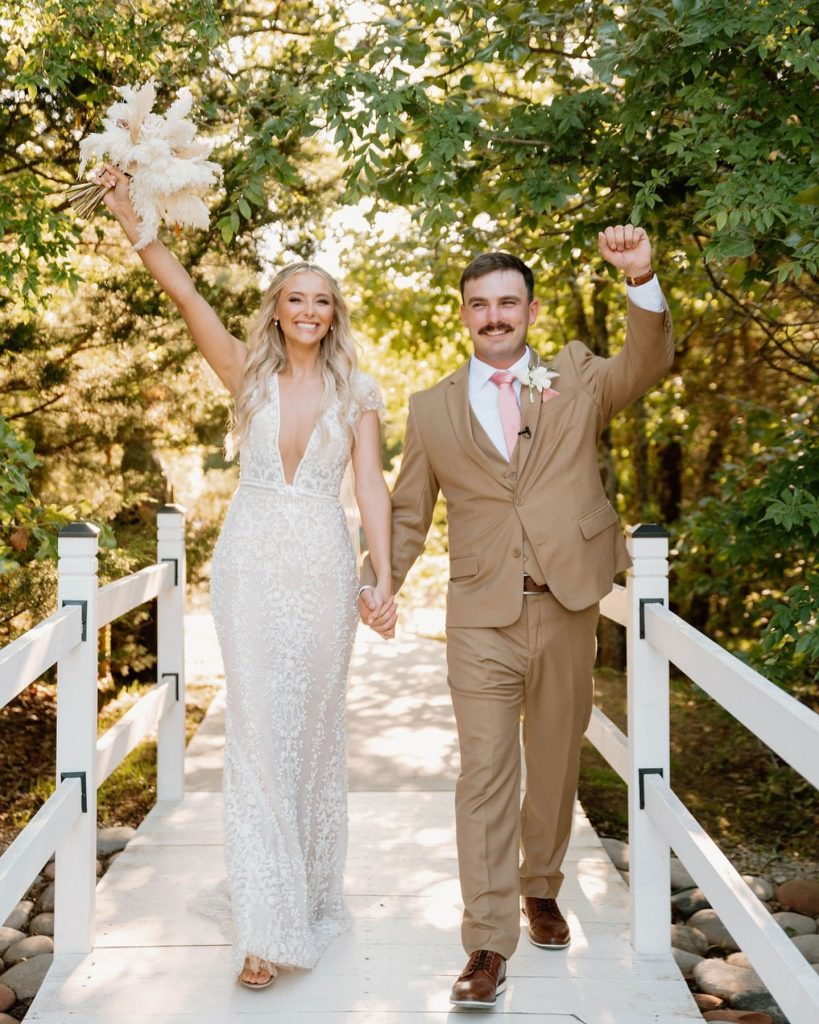Taylor and Logan’s beautiful outdoor ceremony at Still Meadows Wedding & Event Venue in May was truly memorable! Fun fact about the venue: The bridge is one of the most popular spots for photos. It’s where you cross to walk down to the love of your life, and also the bridge you cross together once you’re married!