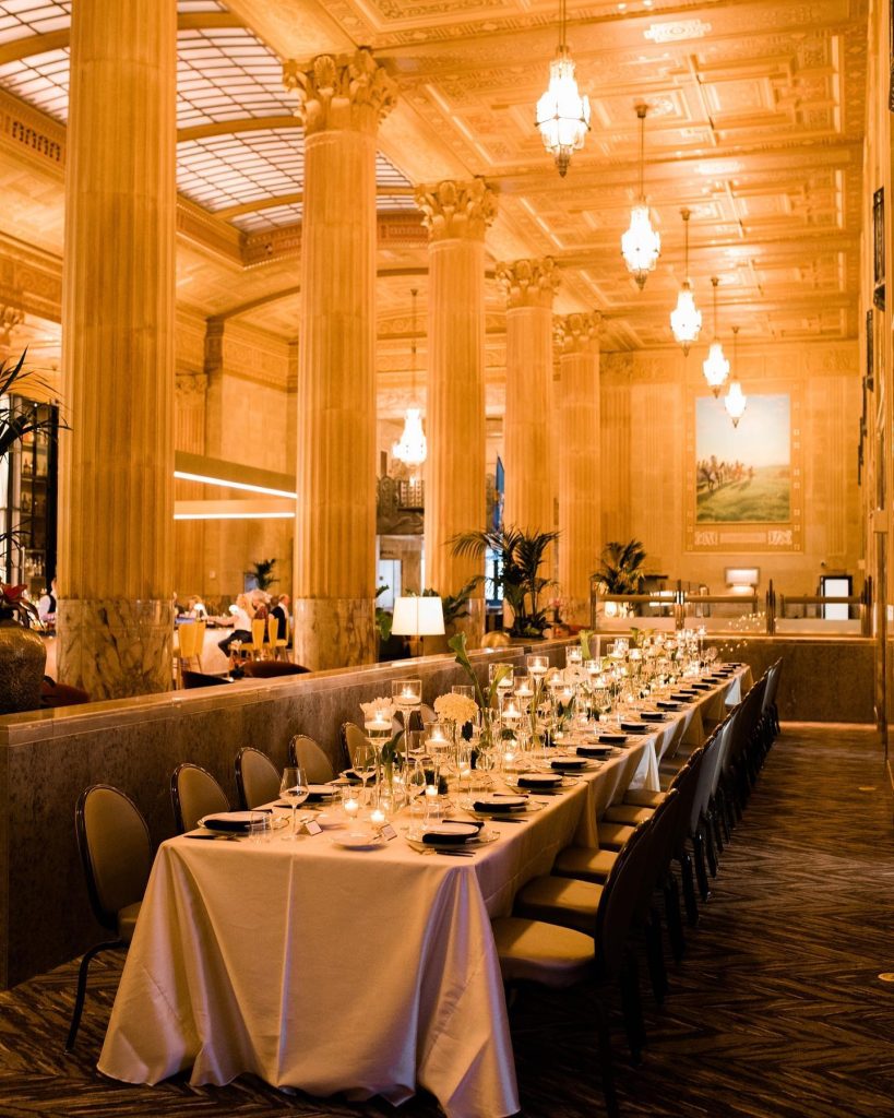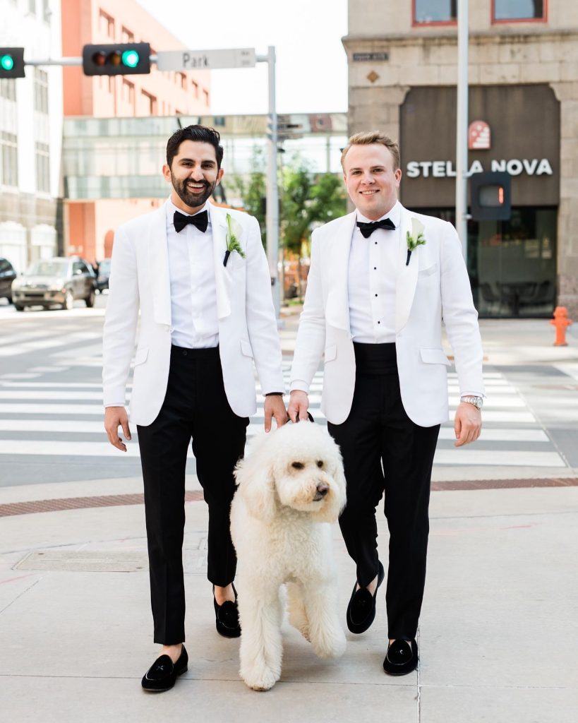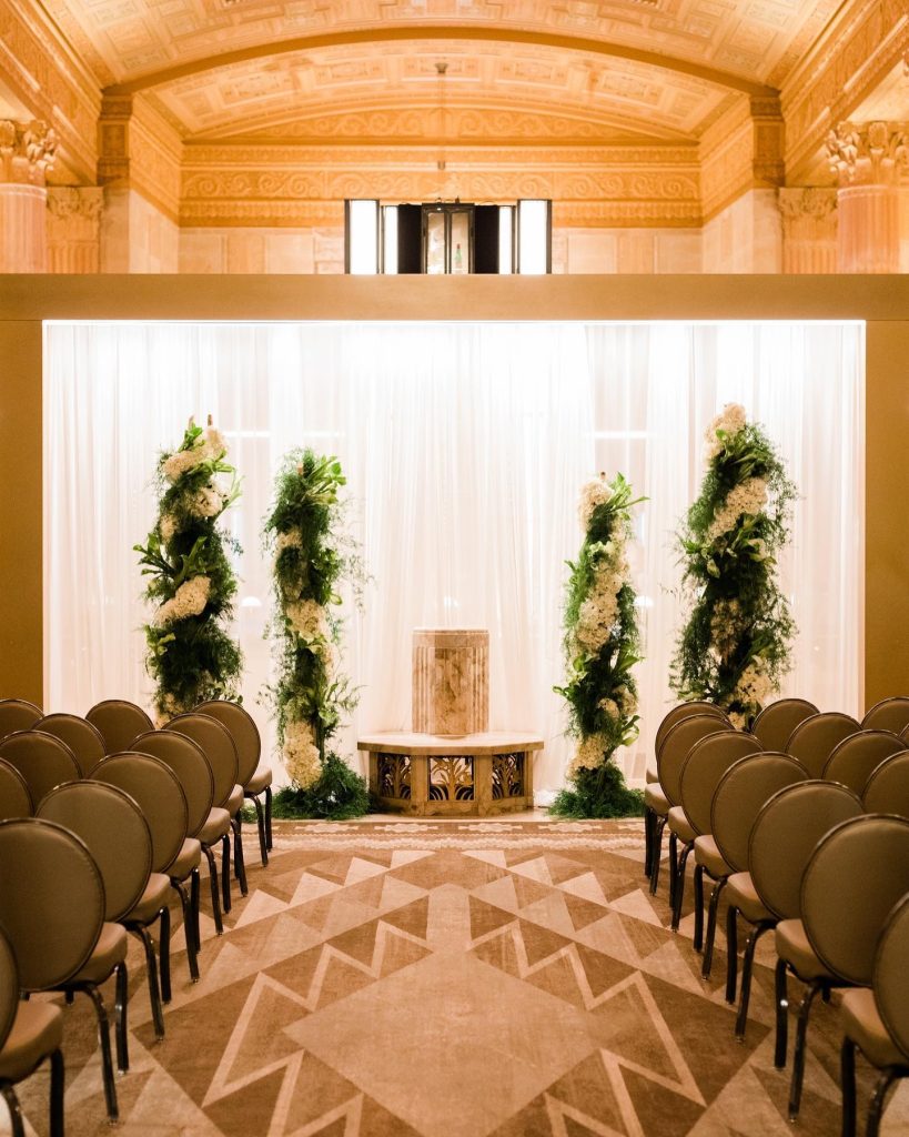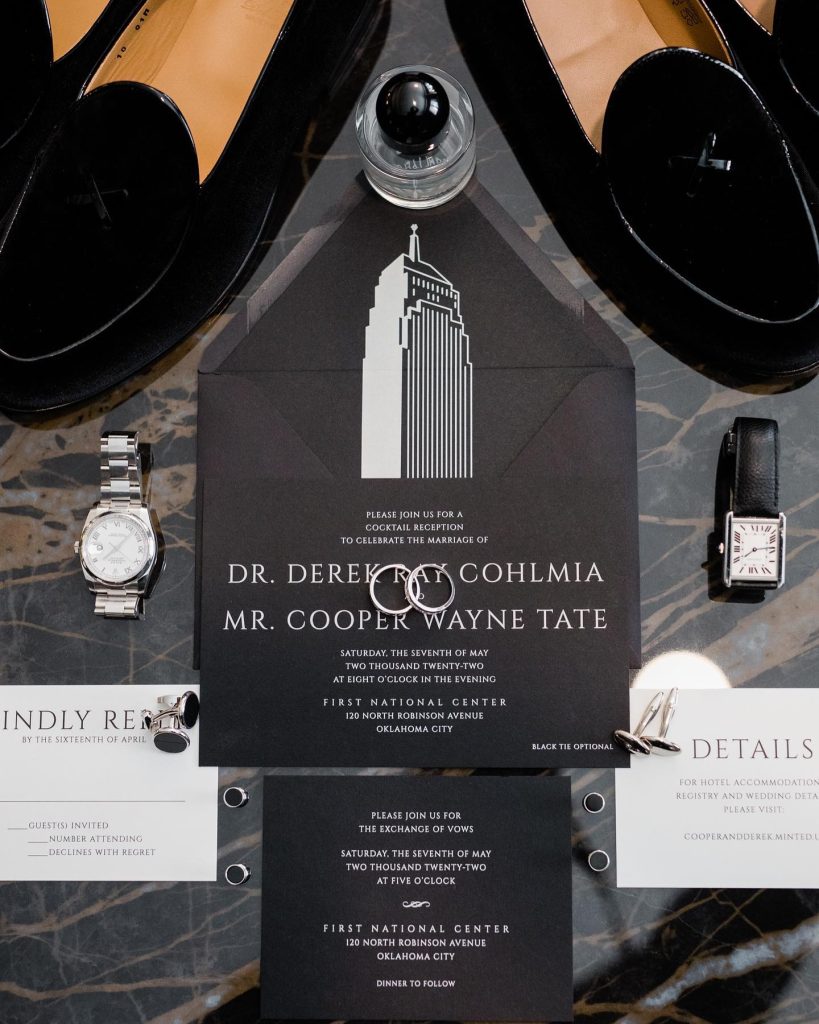 “After our private last dance, we walked down the grand staircase at The National Hotel at First National Center, surrounded by our guests who were lining the escalators and balcony for our exit.” – Derek + Cooper