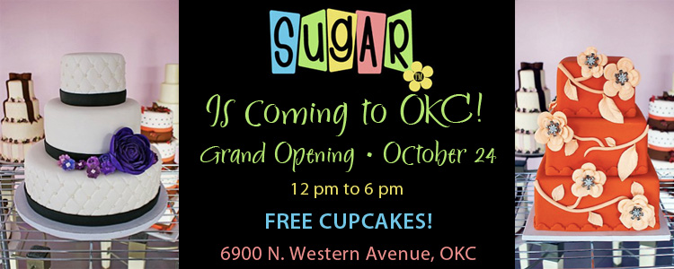 Sugar is opening a new location in Oklahoma City this Sunday, October 24! Be sure to stop by between 12 and 6 pm to check out the new digs and enjoy a free cupcake while you’re there! We’re sure there will be plenty of goodies on display and we just can’t resist those tasty treats! Enjoy!