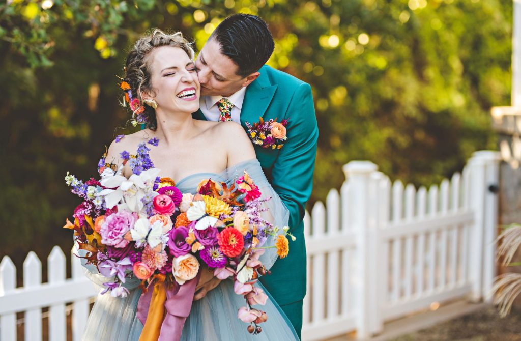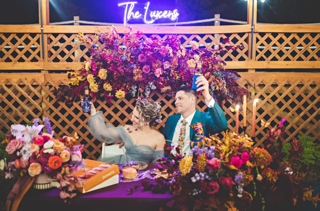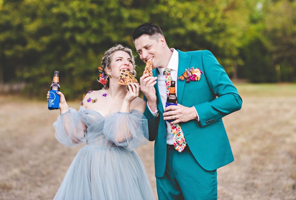 Chelsea & Spencer’s whimsical wedding is giving us all the butterflies, quite literally! Their wedding day was personalized to perfection, complete with a private dance featuring their beloved pup, a snapshot with a pre-marital pizza slice, and of course, a vibrant color scheme. Shoutout to Ribbon & Blooms Floristry for bringing this bride’s fairytale wedding vision to life.