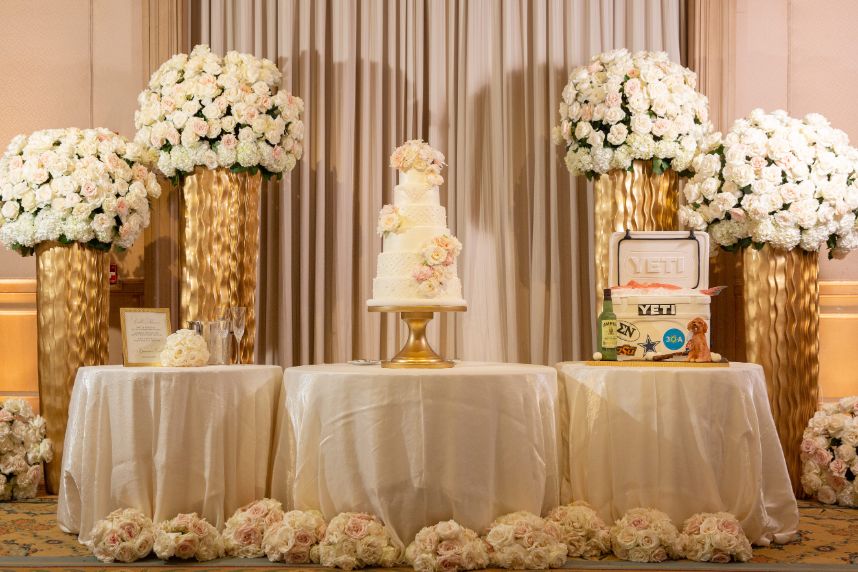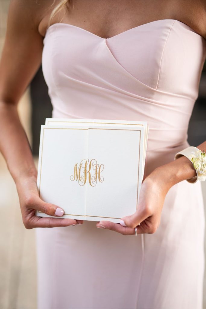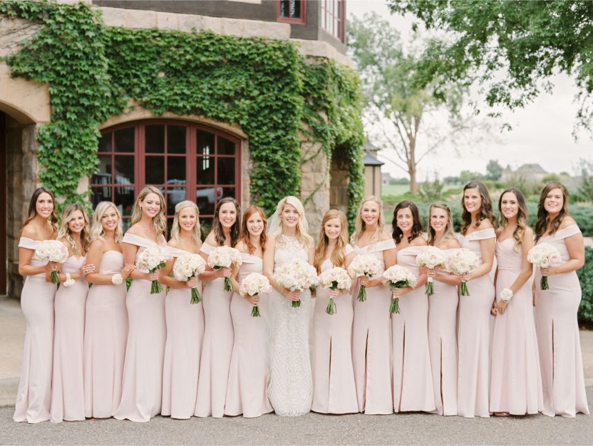 Maggie and Hayden’s timeless ballroom wedding is oh-so-beautiful in blush and ivory hues! Where do we even begin when there are so many incredible details to share!? Paper + More created the perfect first impression with classic wedding invitations! Maggie’s Lazaro wedding gown from J.J. Kelly Bridal Salon is pure elegance, her maids were perfectly complementary in pale pink gowns from Prim, and everyone’s hair was perfect thanks to the talents of Lexi Faught. The ballroom at Gaillardia looked oh-so-romantic with cream and blush pink florals from The Fleuriste and coordinating decor from Marianne’s Rentals and Mood Party Rentals. Amy Cakes crafted the delicious wedding cake, and Oklahoma wedding photographer Brett Heidebrecht captured every gorgeous detail. Cheers to the happy couple and their beautiful Oklahoma wedding!