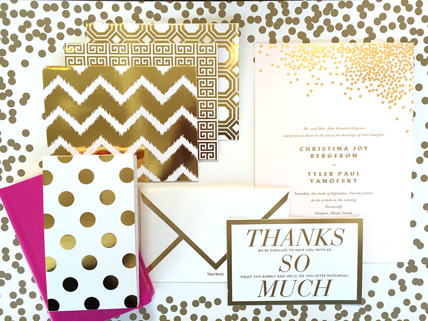2. Metallic – Make your wedding invitations sparkle with a touch of metallic or a full-blown metallic design! We love everything from metallic type to shimmering liners!