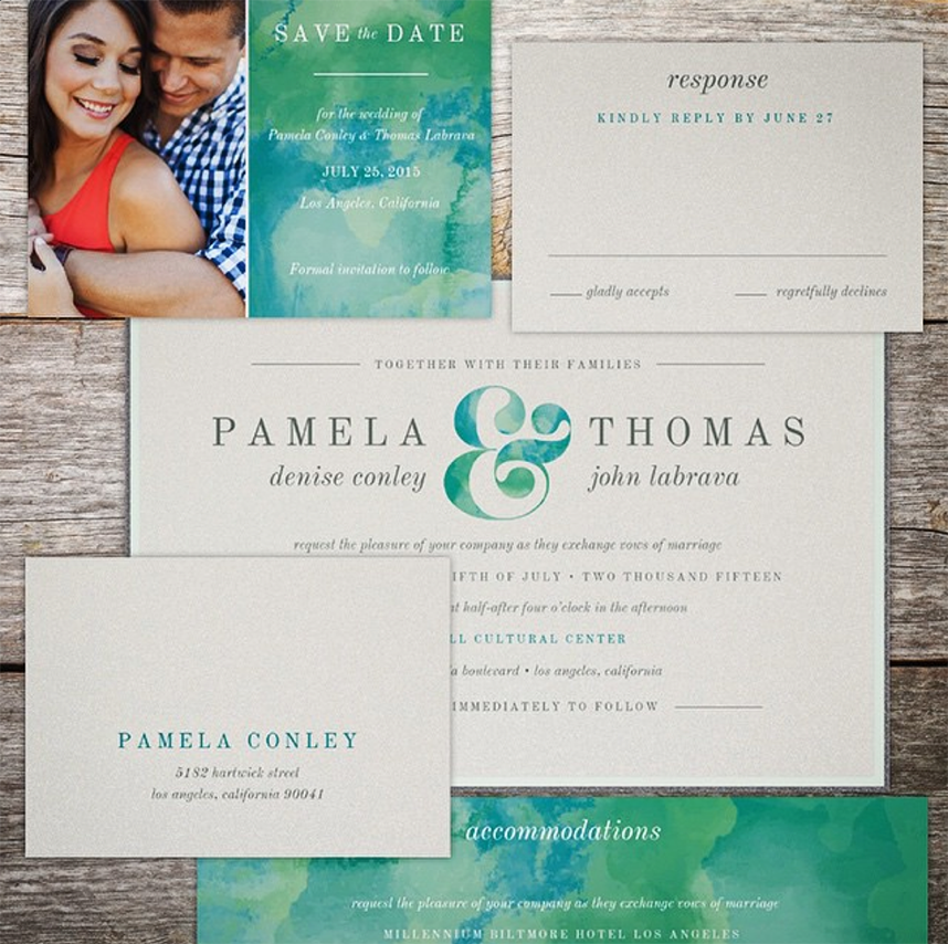 1. Watercolor – For a whimsical affair, we love the use of watercolor throughout an invitation suite! The colors can be perfectly selected to fit your theme and the completed design is sure to leave an amazing first impression.