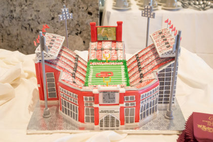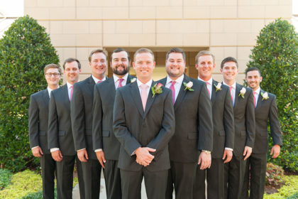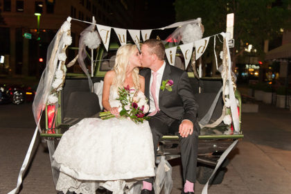 Following the ceremony, guests enjoyed dinner, drinks and dancing at the Petroleum Club of Oklahoma City. The couple’s favorite memory of the reception was when friends and family circled them swaying and singing to Aerosmith’s “I Don’t Want to Miss a Thing.” The evening concluded as the couple ran through a tunnel of guests shaking gold pom poms and they made their grand exit in Tyler’s 1970 Chevrolet truck, the same truck the couple traveled in during so many dates growing up.
