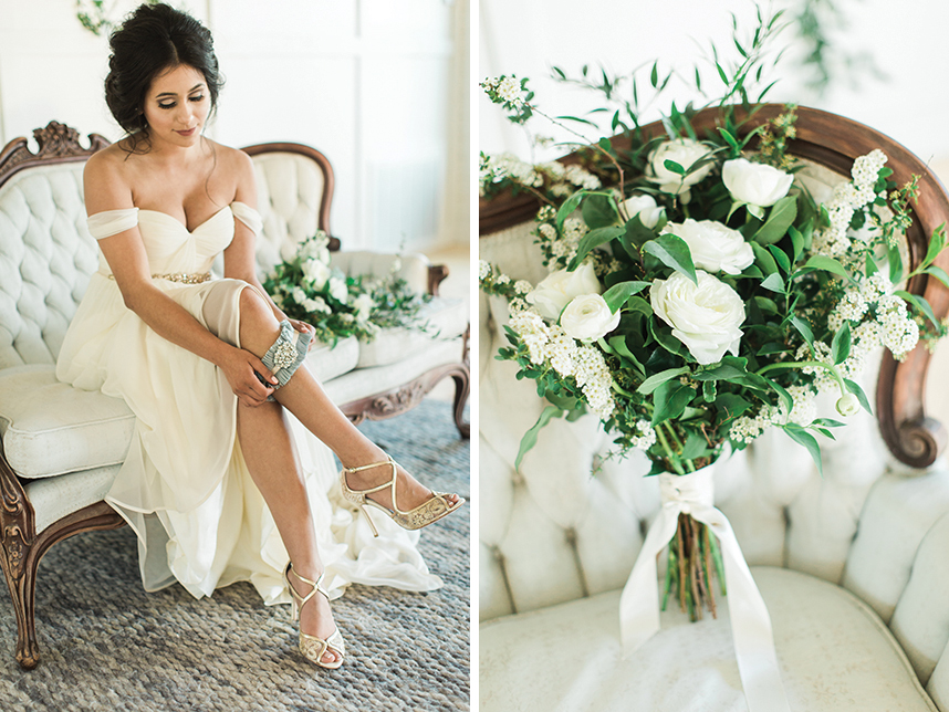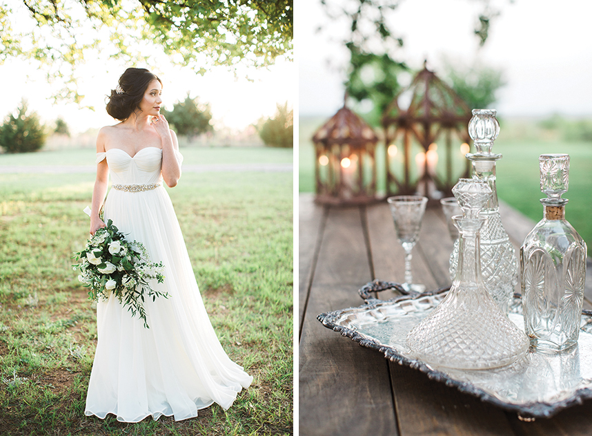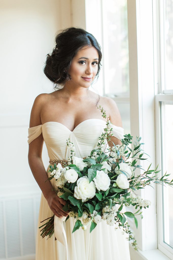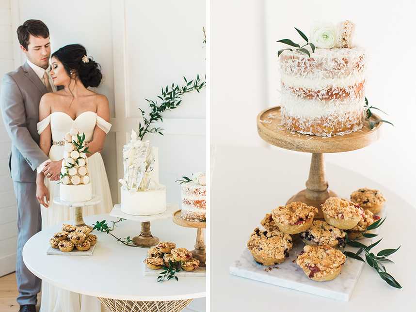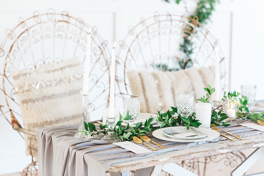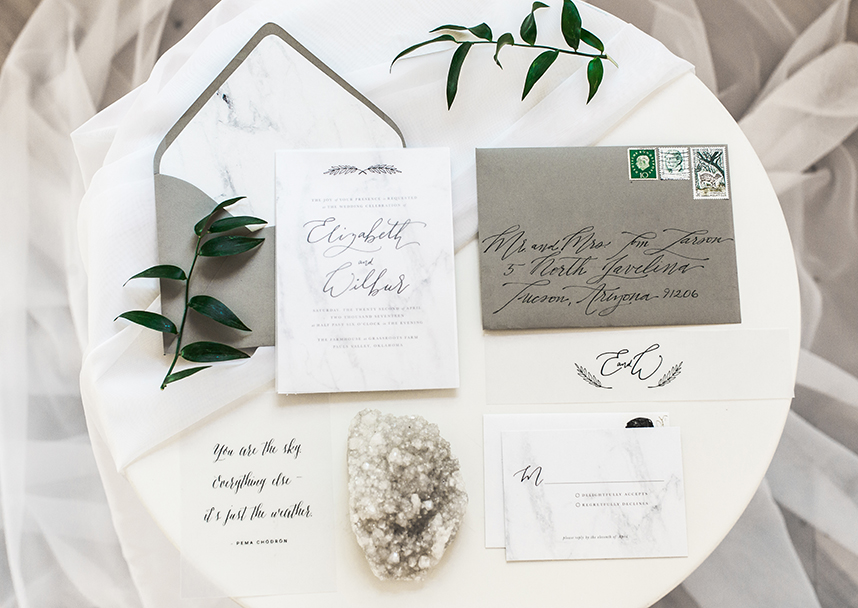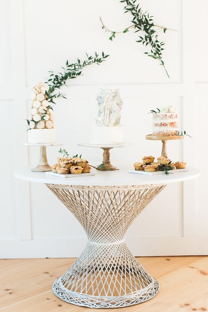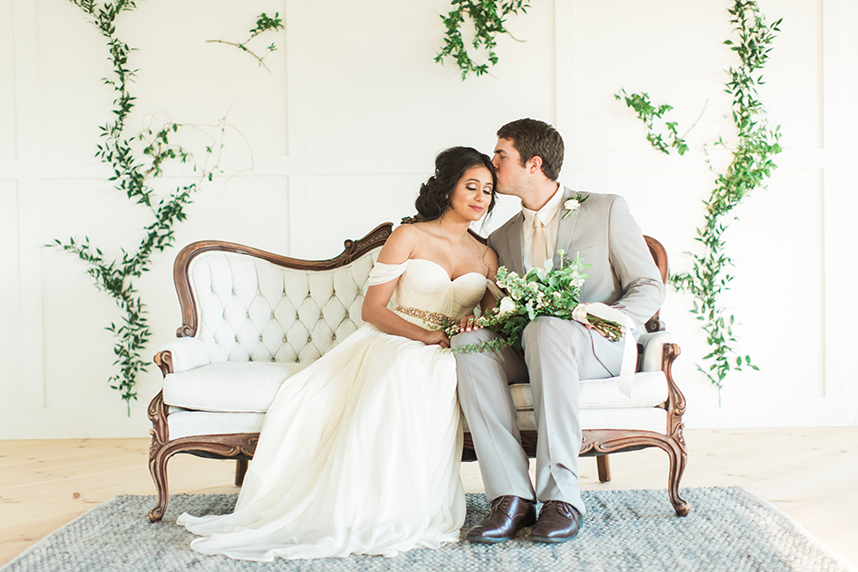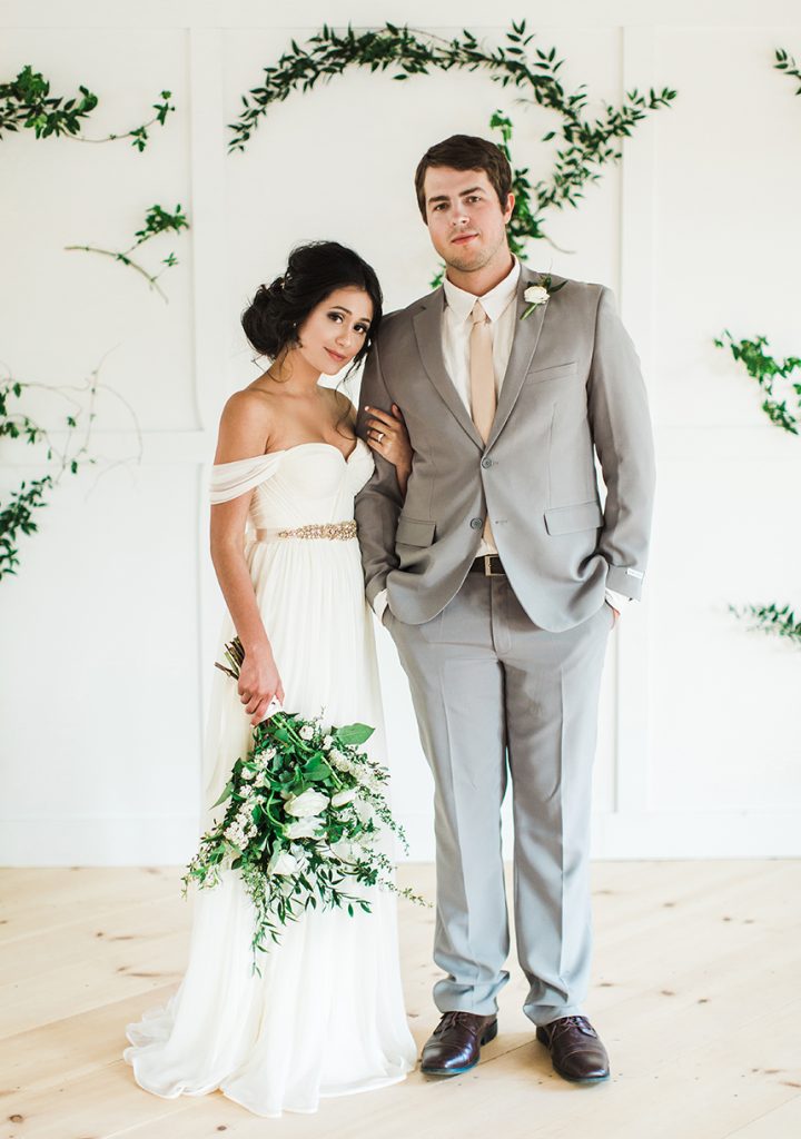 For a modern take on the classic greenery color scheme, we’re loving this unique marble element addition to this styled shoot set at Grassroots Vintage Events! Heavily laden with geometric lines and brass and crystal accents, Hope Photography perfectly captured the fresh approach to this trend-filled wedding inspiration in everything from the detailed decor to the eye-catching tablescape. Along with coordinating marble print menus, Laurel & Marie designed a beautiful grey, black and white paper suite in the same printed swirl. An architecturally sculpted cake made to partially resemble a marble block from The Round House Bakery stood as the perfect centerpiece to a table full of treats. But sweeter than the cake was the model bride’s stunning look – a gorgeous off-the-shoulder sweetheart neckline gown from Chantilly Couture with delicate waist embellishments and a full, airy skirt. Her hair and makeup by Brushed Salon were kept simple with a subtle smokey eye, nude lip and loosely swept updo to play off the ease of the shoot. Pin your favorites from this major trend-forward inspiration! Enjoy!