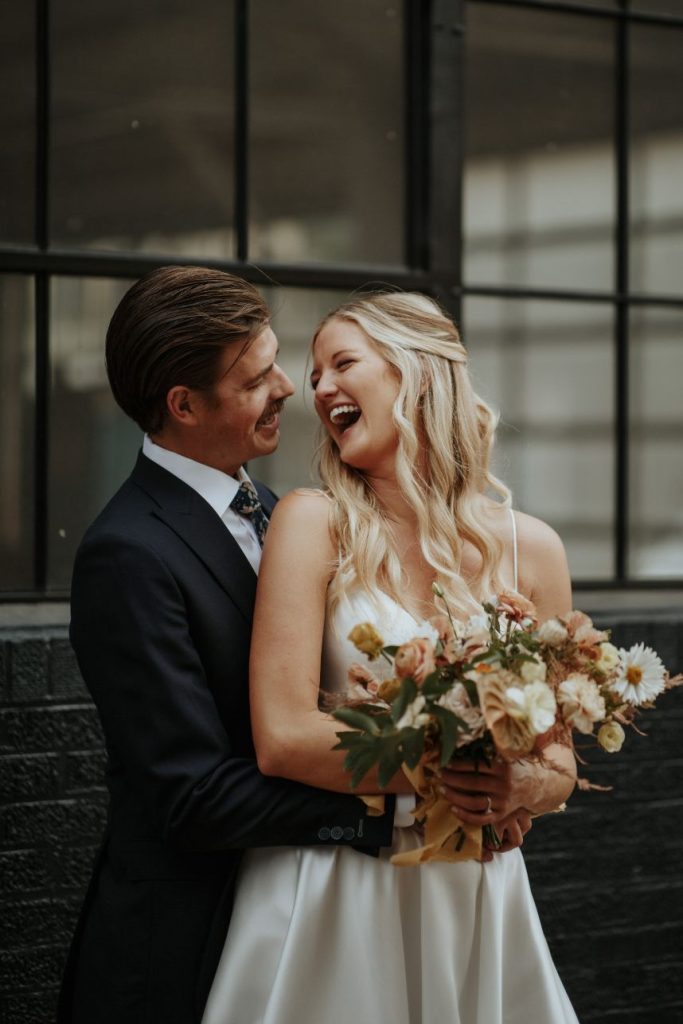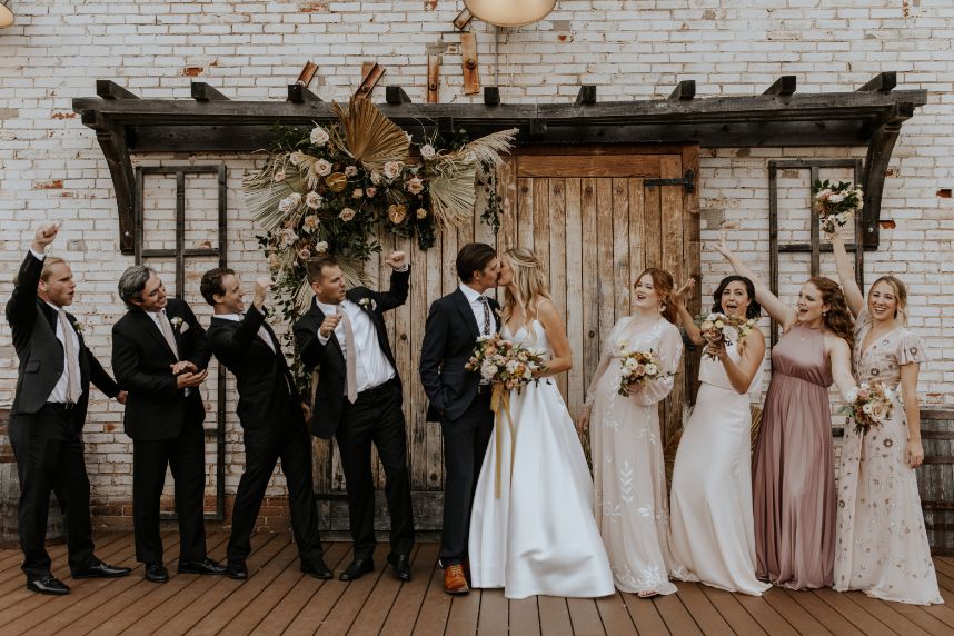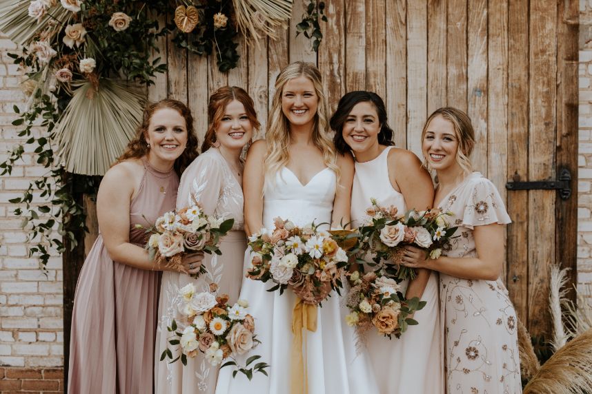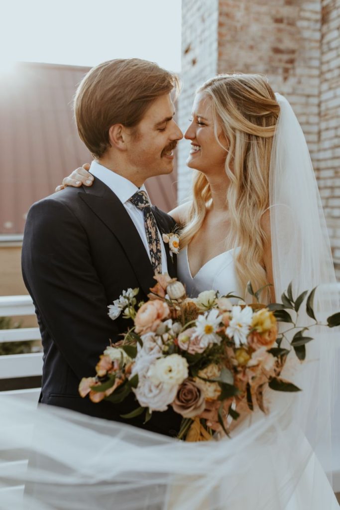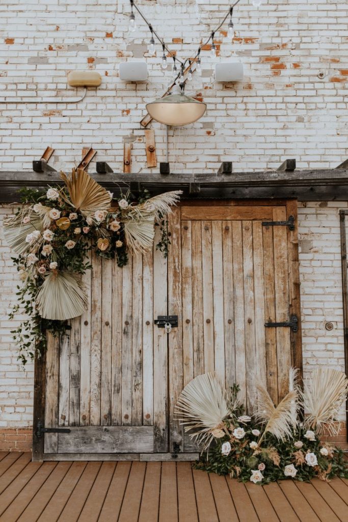 Kyra and Shane’s rustic and neutral wedding was held at the stunning Plenty Mercantile – perfect rooftop location for these two to tie the knot! Krya and Shane met back in college their freshman year at LSU when they were both on the swim team – how adorable?! For their wedding, this couple was going for a fun and minimalistic neutral look, and every detail whether big or small completely reflects this theme! We also love how each bridesmaid had their own unique dress with different colors and textures! The rustic wood door at the altar surrounded by a white brick wall and florals with boho touches from XO by Haleigh Kenney is such a beautiful backdrop for this couple as they exchanged their vows and said “I do”! With the help of Box Talent, the Groove Merchants kept this couple and their closest friends and family enjoying and dancing the night away! Cheers to Kyra and Shane and their trendy rooftop wedding!