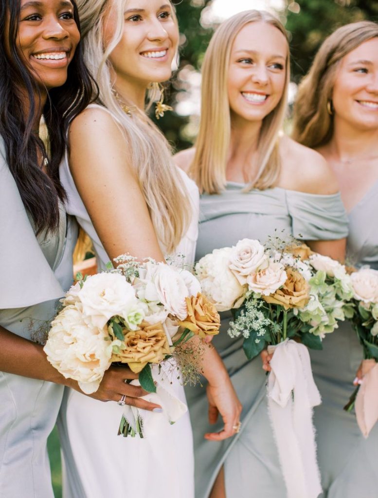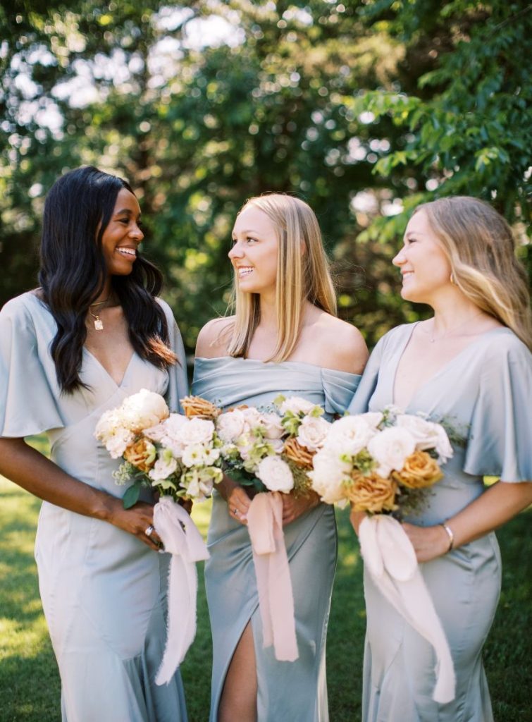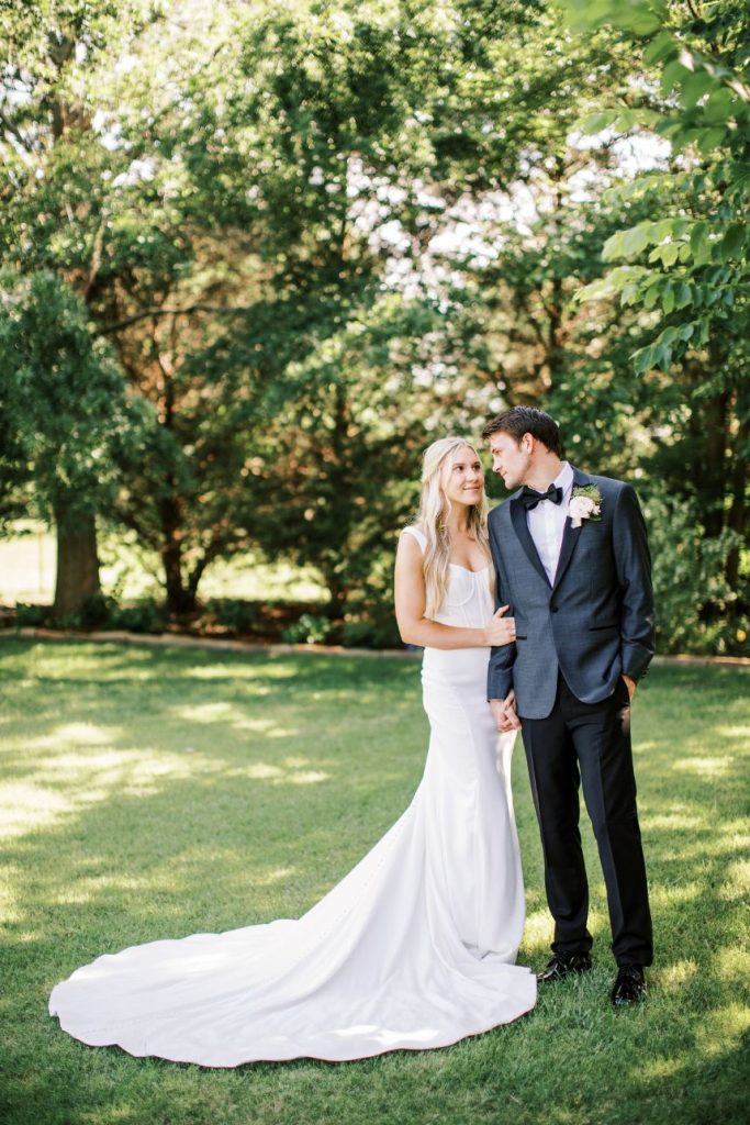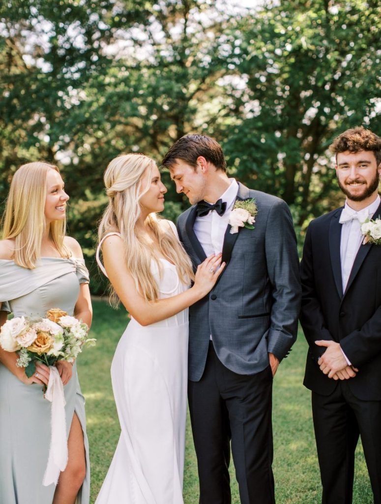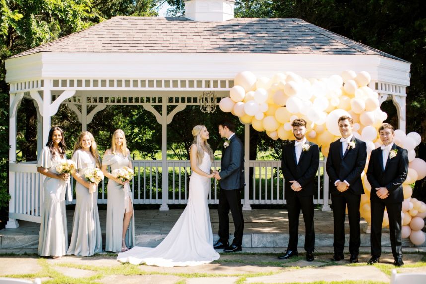 This summer wedding inspiration comes with the promise of two precious couples that each deserved their own time in the spotlight, both held at Stillwater’s stunning Meditations Weddings + Events + Catering in indoor and outdoor weddingscapes! In the first of the styled scenes captured by the talented Carsyn Craytor Photography, an adorable couple wed under a modern, whimsical balloon arch in the prettiest peachy shades. Bride and groom prepared for the excitement of the day in separate quarters – she got pampered with a modern, natural glam hair and makeup look in the breathtaking white bridal suite with her sweet bridesmaids while he and his best guys got suited up in a charming tux from EVERYMAN. When the time came for “I do,” our bride walked down the aisle in a form-fitting gown from Chantilly Bridal Studio with the most darling monochromatic corset bodice. Muted pinks and peach blooms from Poppy Lane Design sprinkled about the ceremony and reception scenes were the perfect addition for a refined romantic touch. Read on for more about the next couple and see another design awash with botanical details and adorable moments!