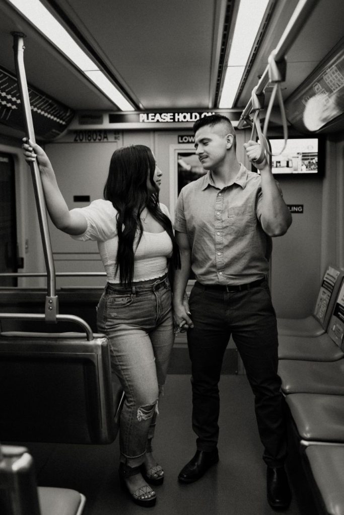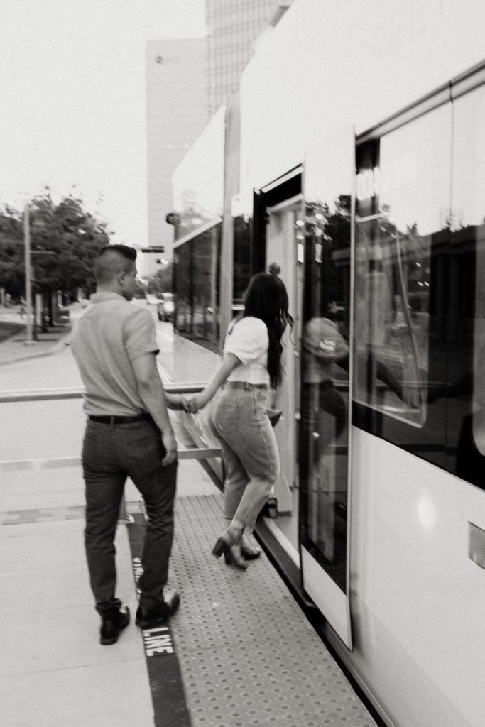 From the photographer, Susan Alyse Photography: “For Fatima and Joseph’s downtown OKC engagement session, we spent the evening running all around the city. From drinks at their favorite plant-filled bar, sunset rooftop photos, to ending the night with streetcar rides at dusk – there is almost nothing we didn’t do. They were so fun to shoot. The session is young, fun and colorful. Hope you love!”
