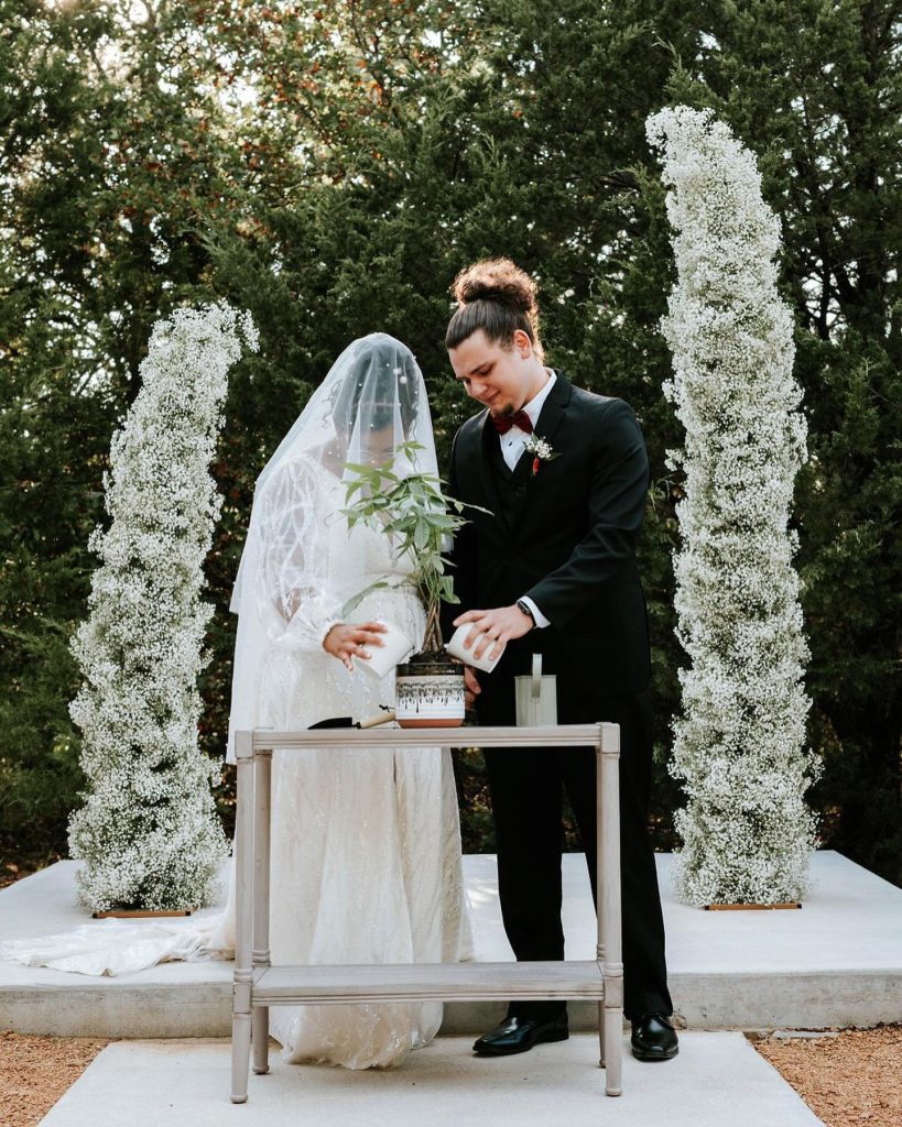 Janina & Roman experienced the best of both worlds with an enchanting outdoor ceremony under stunning baby’s breath arches, a lively indoor reception with a vibrant color palette, and disco-themed decor!